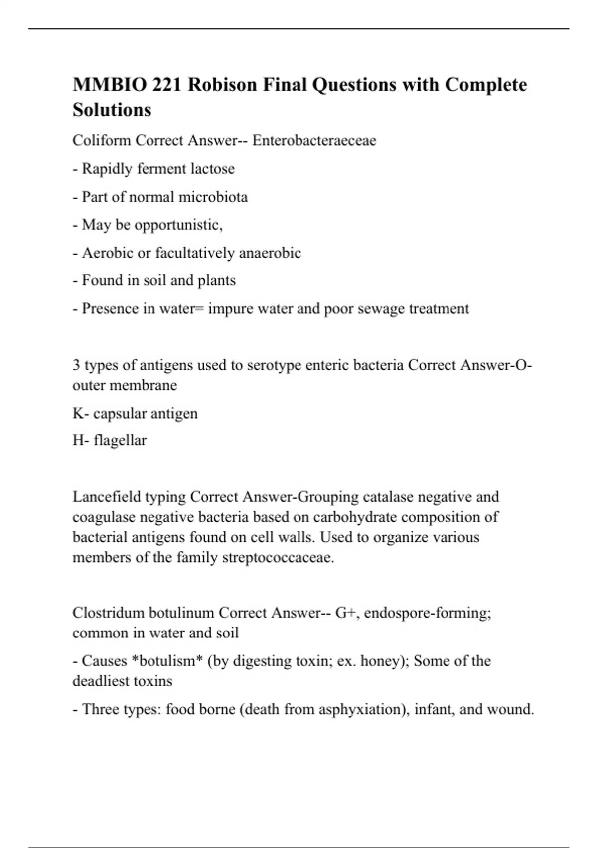 MMBIO 221 Robison Final Questions with Complete Solutions