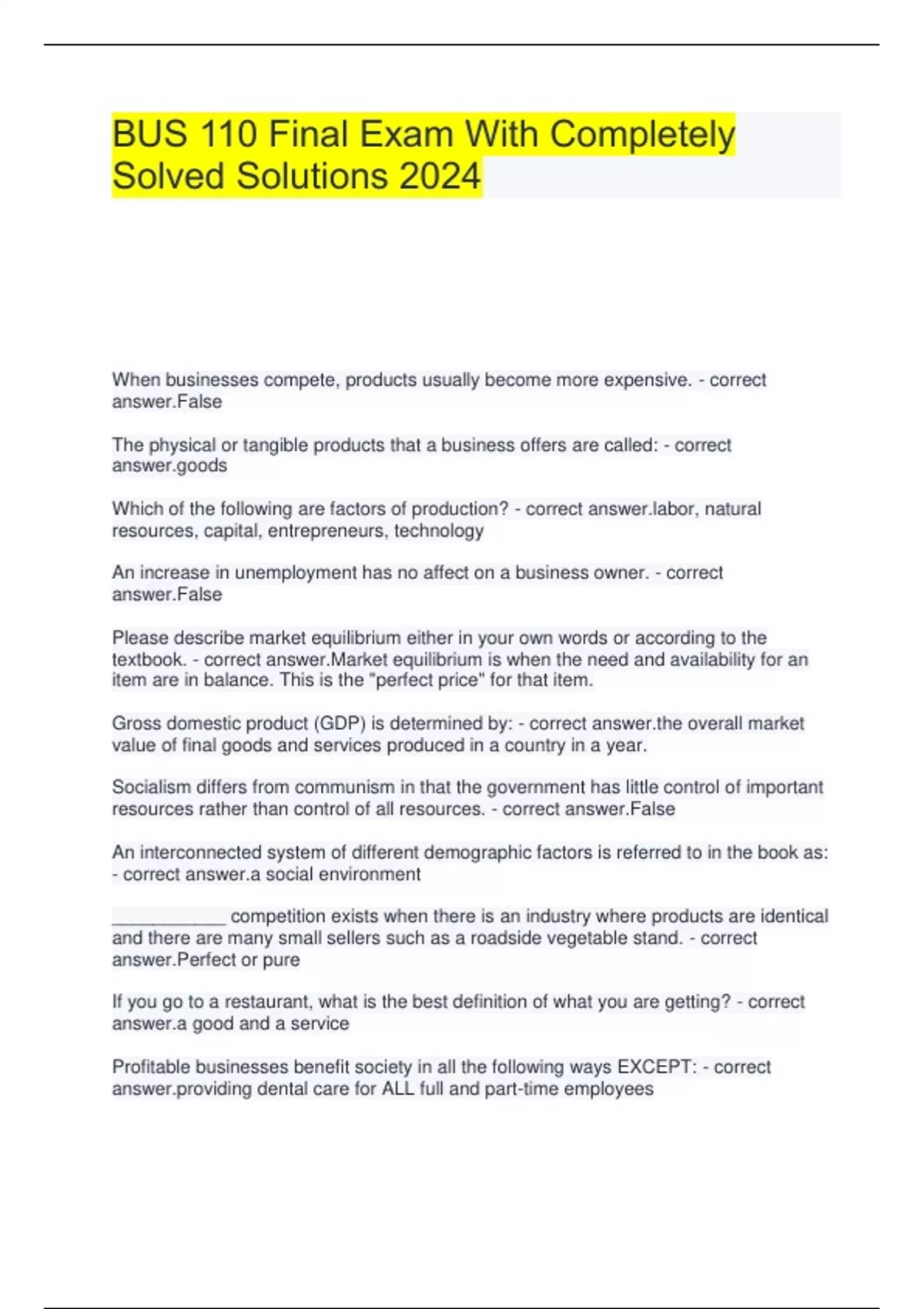 A package deal for BUS 110 Final Exam With Complete Solutions 2024