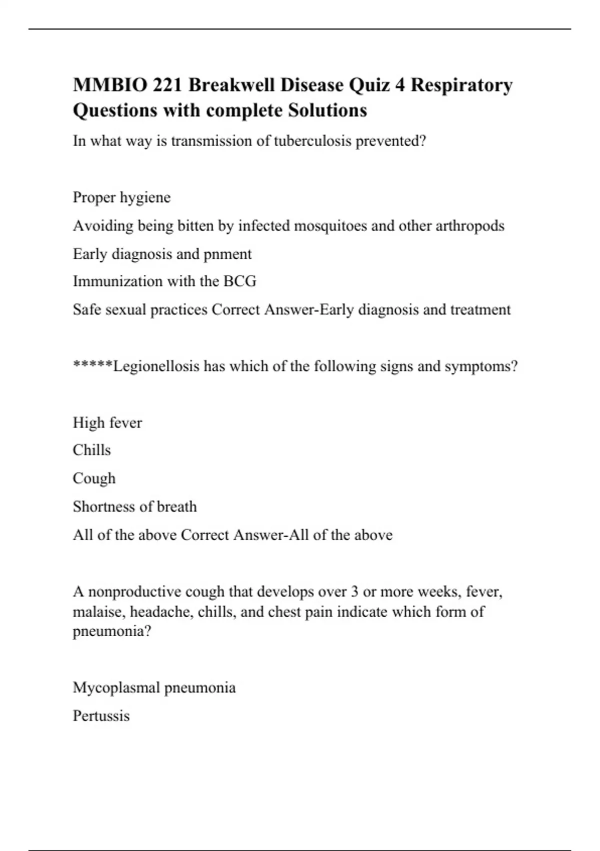 MMBIO 221 Breakwell Disease Quiz 4 Respiratory Questions with complete Solutions