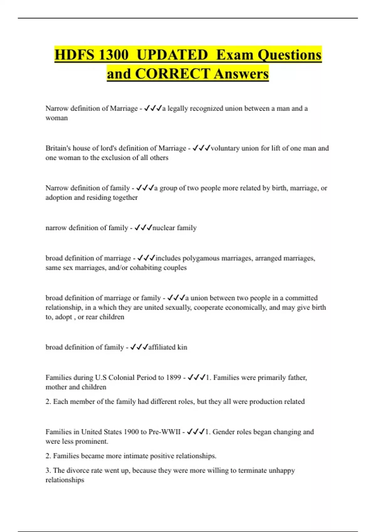HDFS 1300 UPDATED Exam Questions and CORRECT Answers