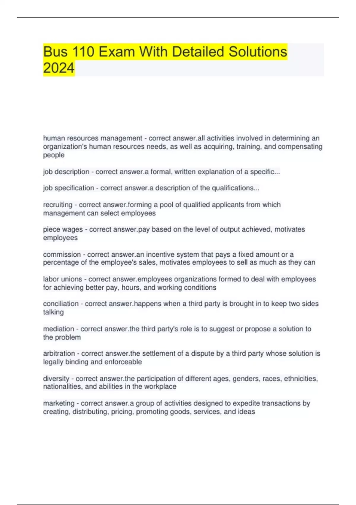 bus 110 exam with detailed solutions 2024