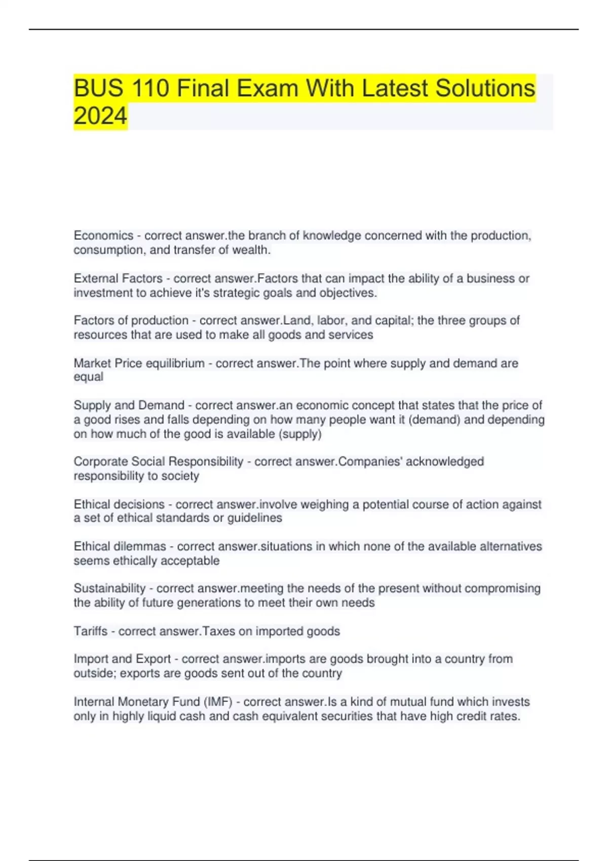 bus 110 final exam with latest solutions 2024