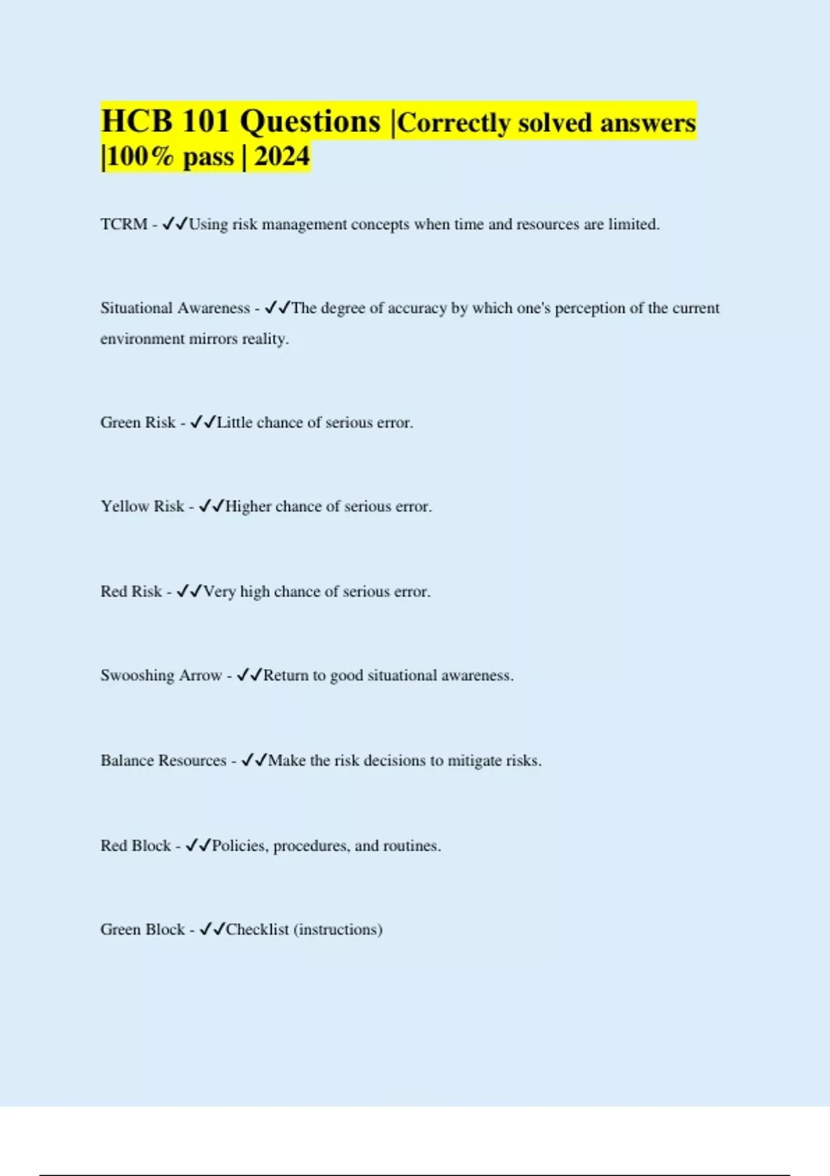 hcb 101 questions correctly solved answers