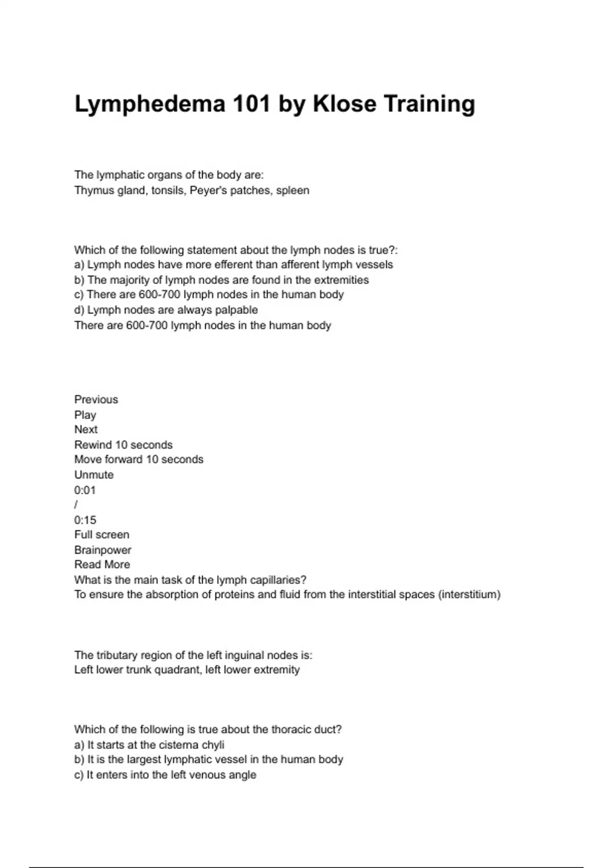 Lymphedema 101 by Klose Training questions and answers A+ score assured 2024/2025