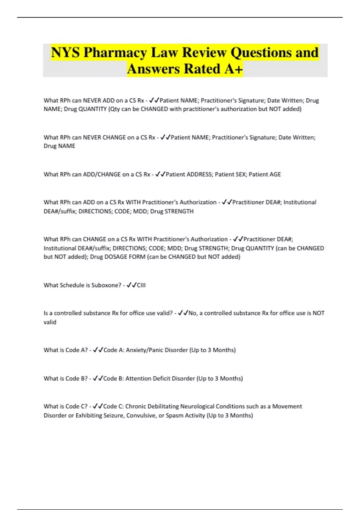 NYS Pharmacy Law Review Questions and Answers Rated A+