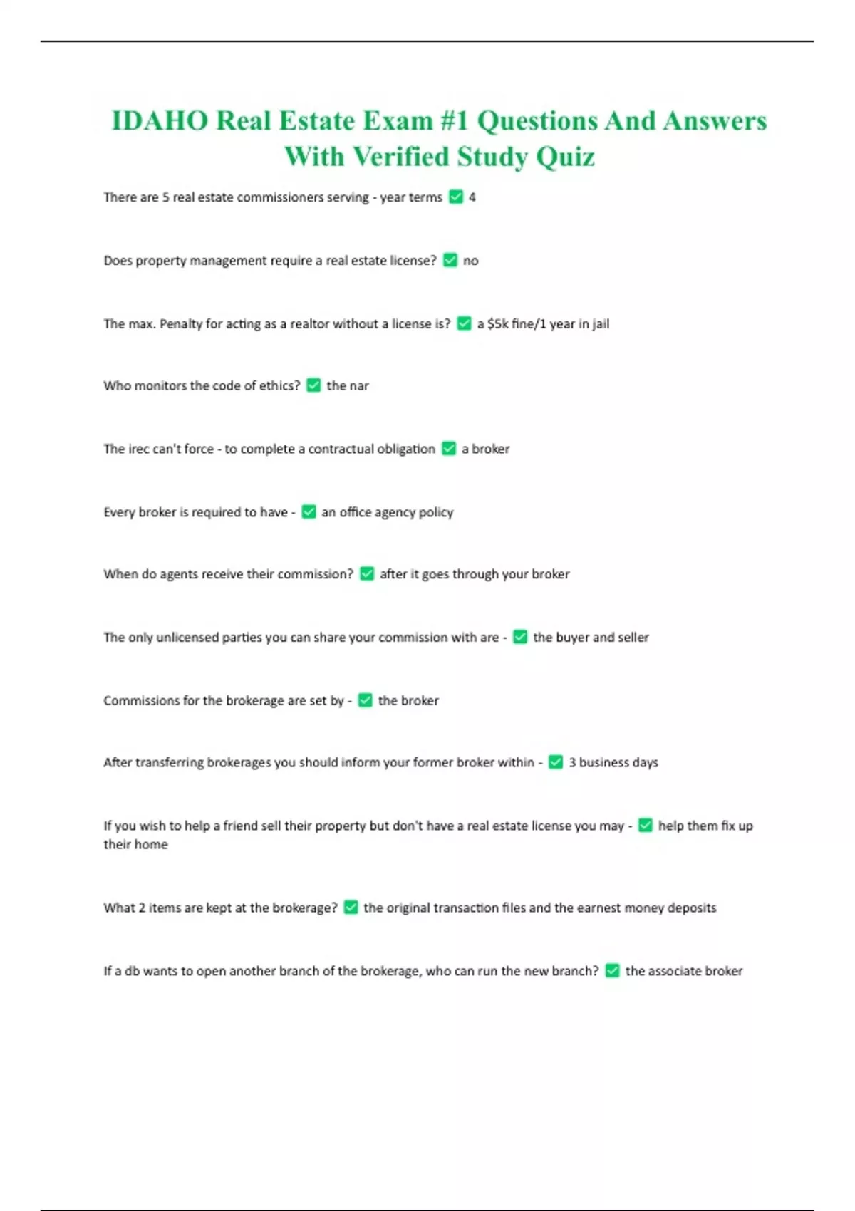 IDAHO Real Estate Exam #1 Questions And Answers With Verified Study Quiz IDAHO Real Estate Exam #1 Questions And Answers With Verified Study Quiz