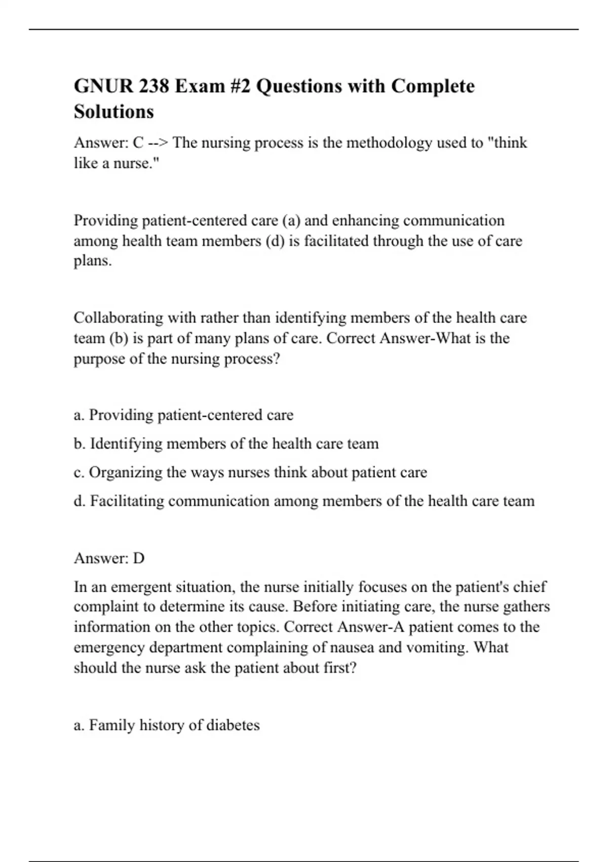 gnur 238 exam 2 questions with complete solutions
