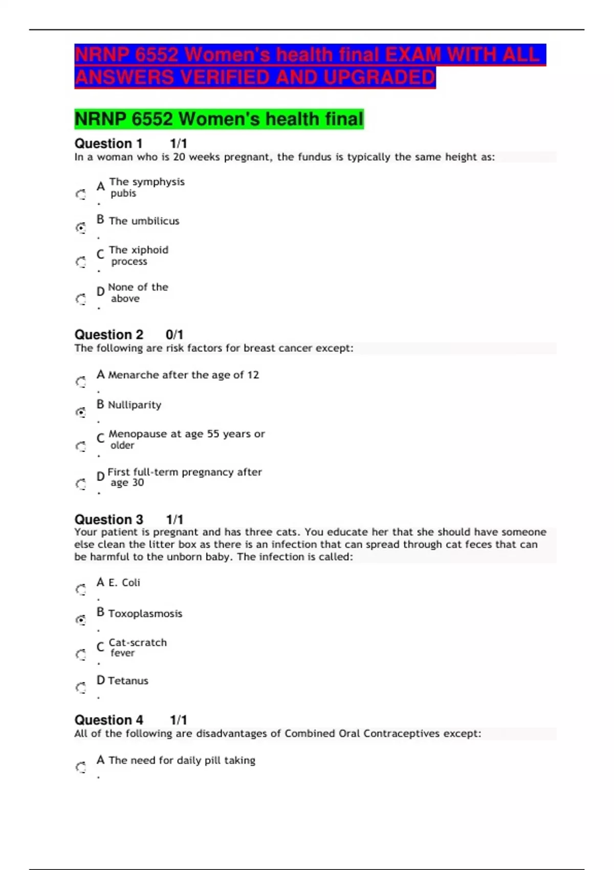 nrnp 6552 womens health final download to score a