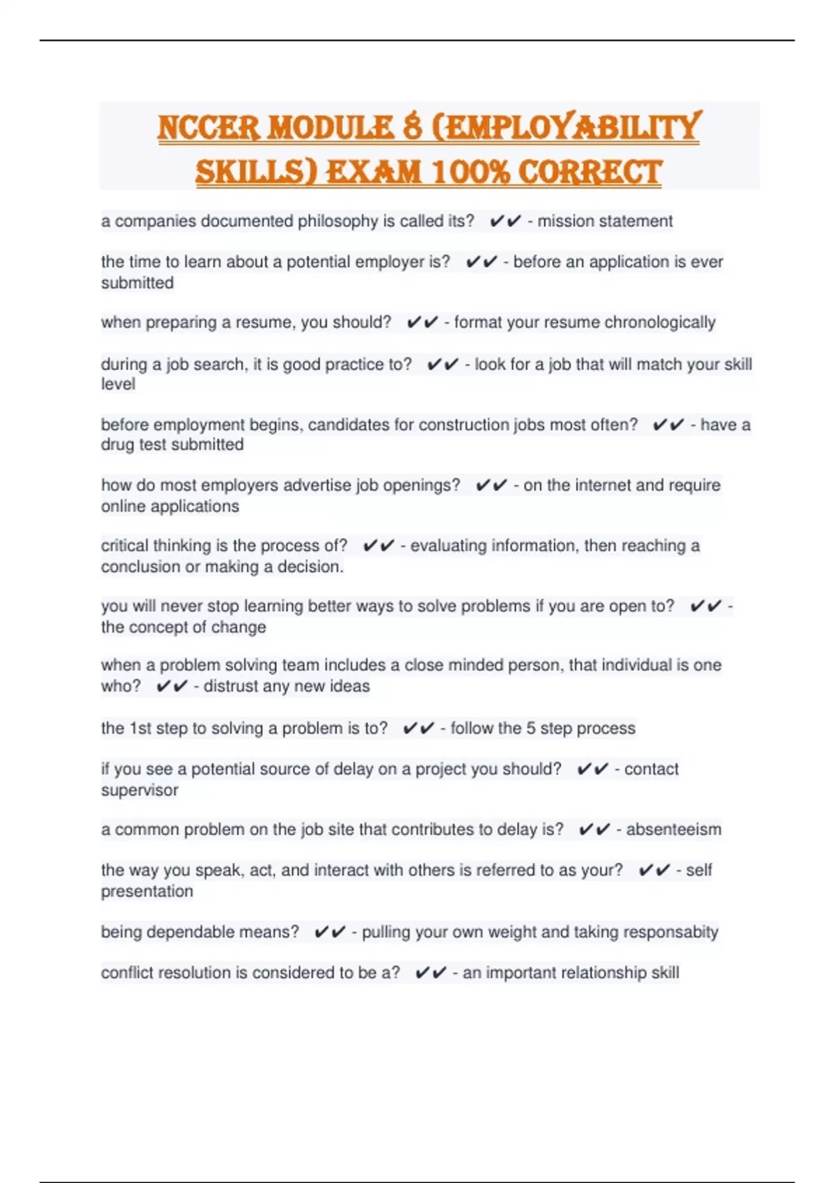 NCCER Module 8 (employability skills) Exam 100% Correct NCCER Module 8 (employability skills) Exam 100% Correct NCCER Module 8 (employability skills) Exam 100% Correct NCCER Module 8 (employability skills) Exam 100% Correct NCCER Module 8 (employability skills) Exam 100% Correct NCCER Module 8 (employability skills) Exam 100% Correct NCCER Module 8 (employability skills) Exam 100% Correct NCCER Module 8 (employability skills) Exam 100% Correct NCCER Module 8 (employability skills) Exam 100% Correct NCCER Module 8 (employability skills) Exam 100% Correct NCCER Module 8 (employability skills) Exam 100% Correct NCCER Module 8 (employability skills) Exam 100% Correct NCCER Module 8 (employability skills) Exam 100% Correct NCCER Module 8 (employability skills) Exam 100% Correct NCCER Module 8 (employability skills) Exam 100% Correct NCCER Module 8 (employability skills) Exam 100% Correct NCCER Module 8 (employability skills) Exam 100% Correct NCCER Module 8 (employability skills) Exam 100% Correct NCCER Module 8 (employability skills) Exam 100% Correct NCCER Module 8 (employability skills) Exam 100% Correct NCCER Module 8 (employability skills) Exam 100% Correct NCCER Module 8 (employability skills) Exam 100% Correct