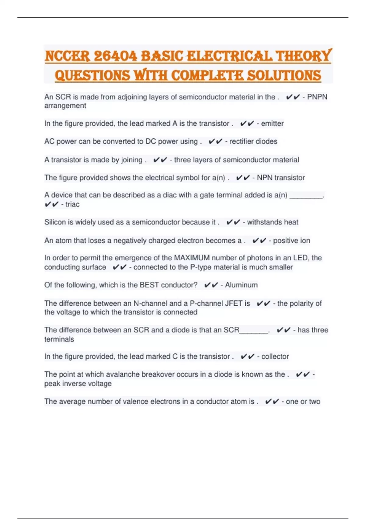 NCCER 26404 Basic Electrical Theory Questions with Complete Solutions
