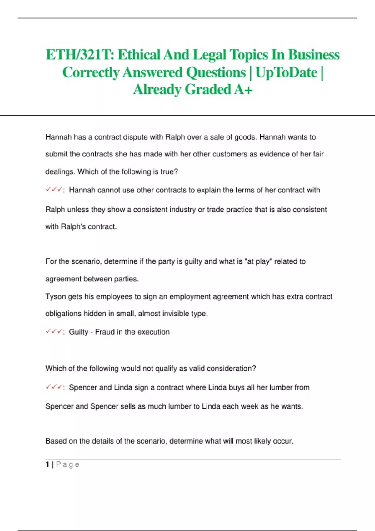 ETH/321T: Ethical And Legal Topics In Business Correctly Answered Questions| UpToDate | Already Graded A+