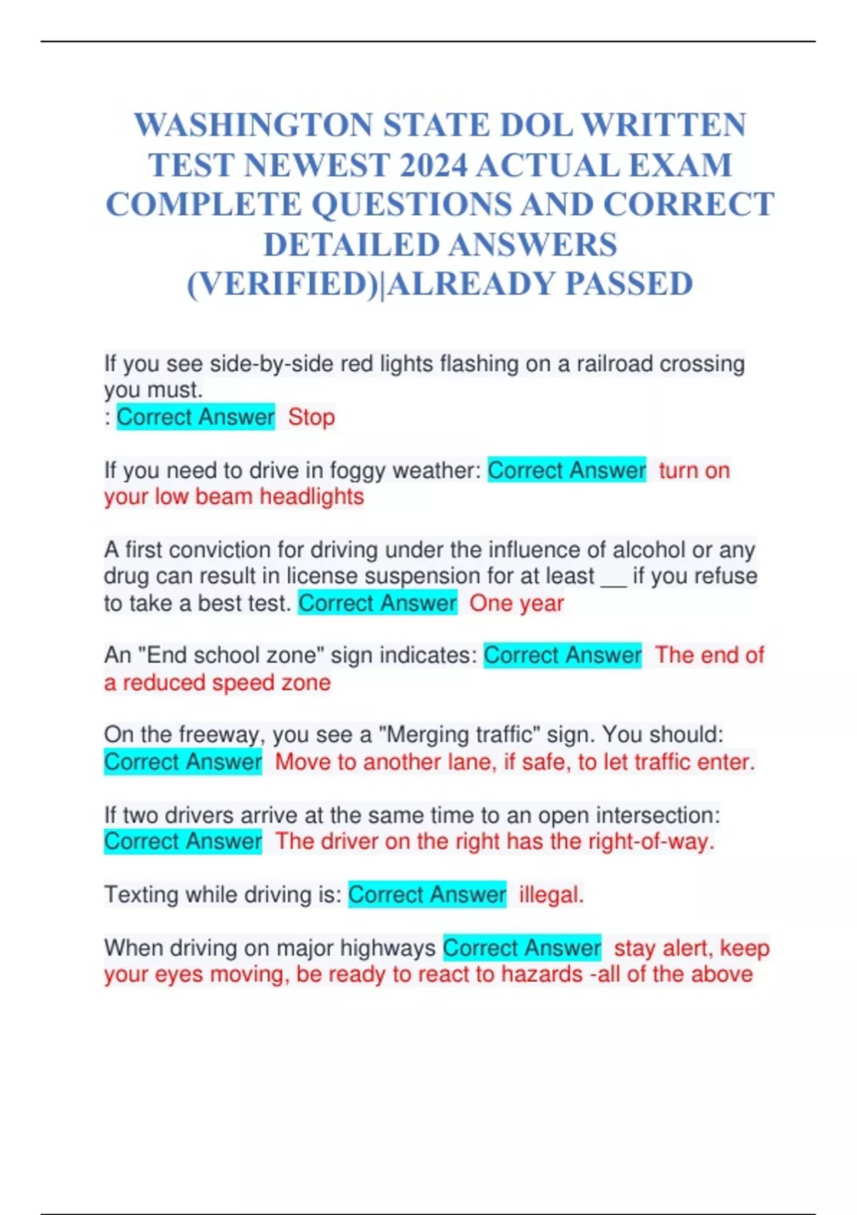 WASHINGTON STATE DOL WRITTEN TEST NEWEST 2024 ACTUAL EXAM COMPLETE QUESTIONS AND CORRECT DETAILED ANSWERS (VERIFIED)|ALREADY PASSED