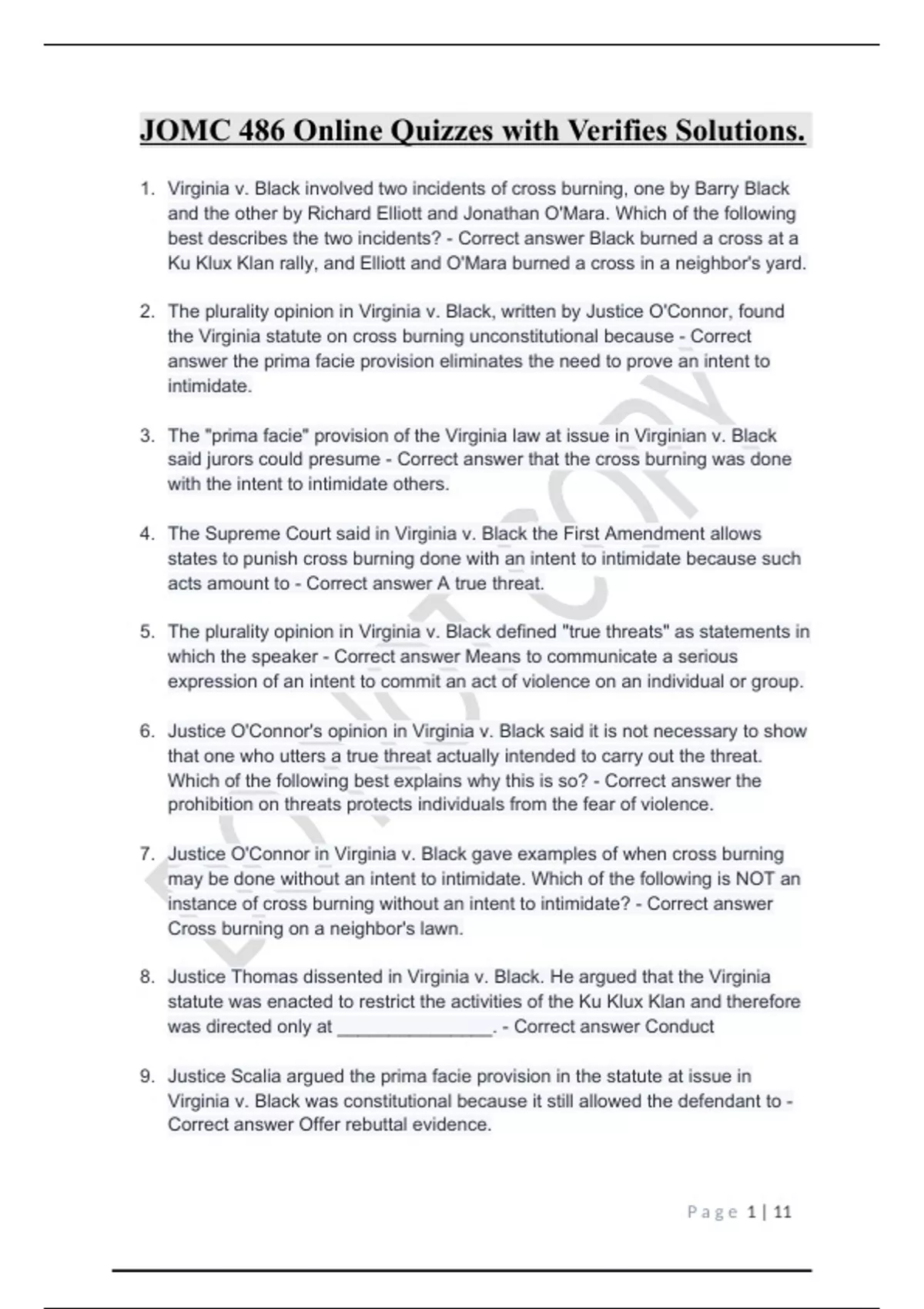 JOMC 486 Online Quizzes with Verifies Solutions.