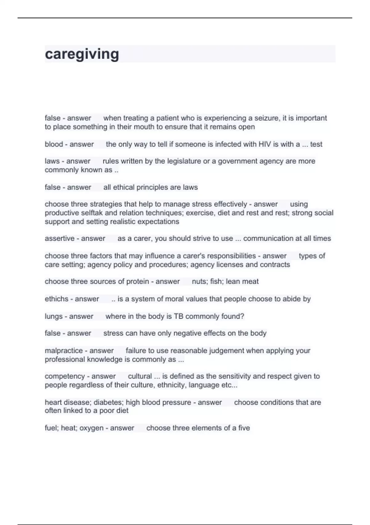 Caregiver Exam Test Compilation Bundle 2024