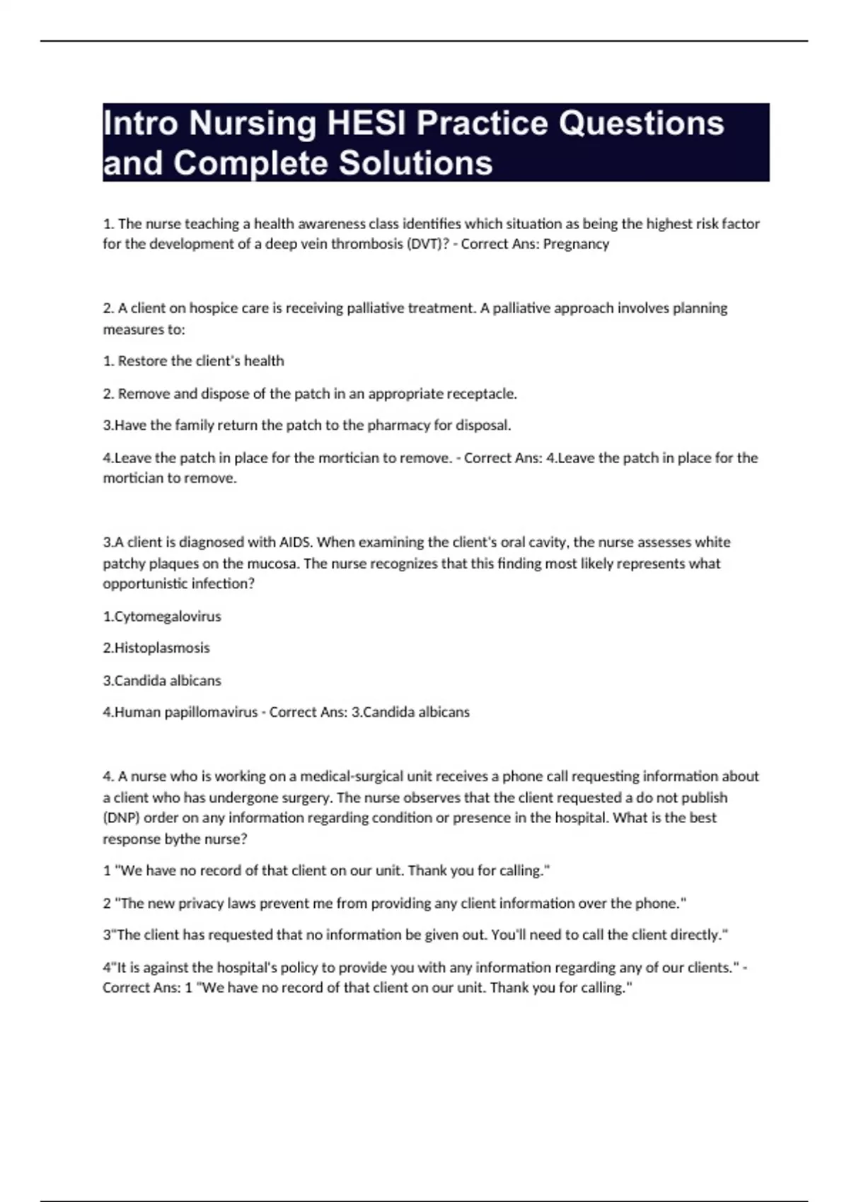 Intro Nursing HESI Practice Questions and Complete Solutions.
