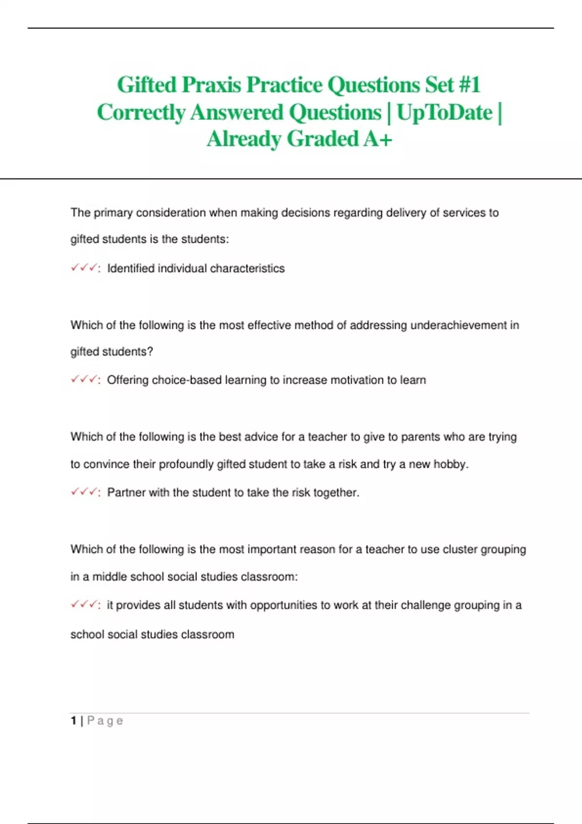 Gifted Praxis Practice Questions Set #1 Correctly Answered Questions| UpToDate | Already Graded A+