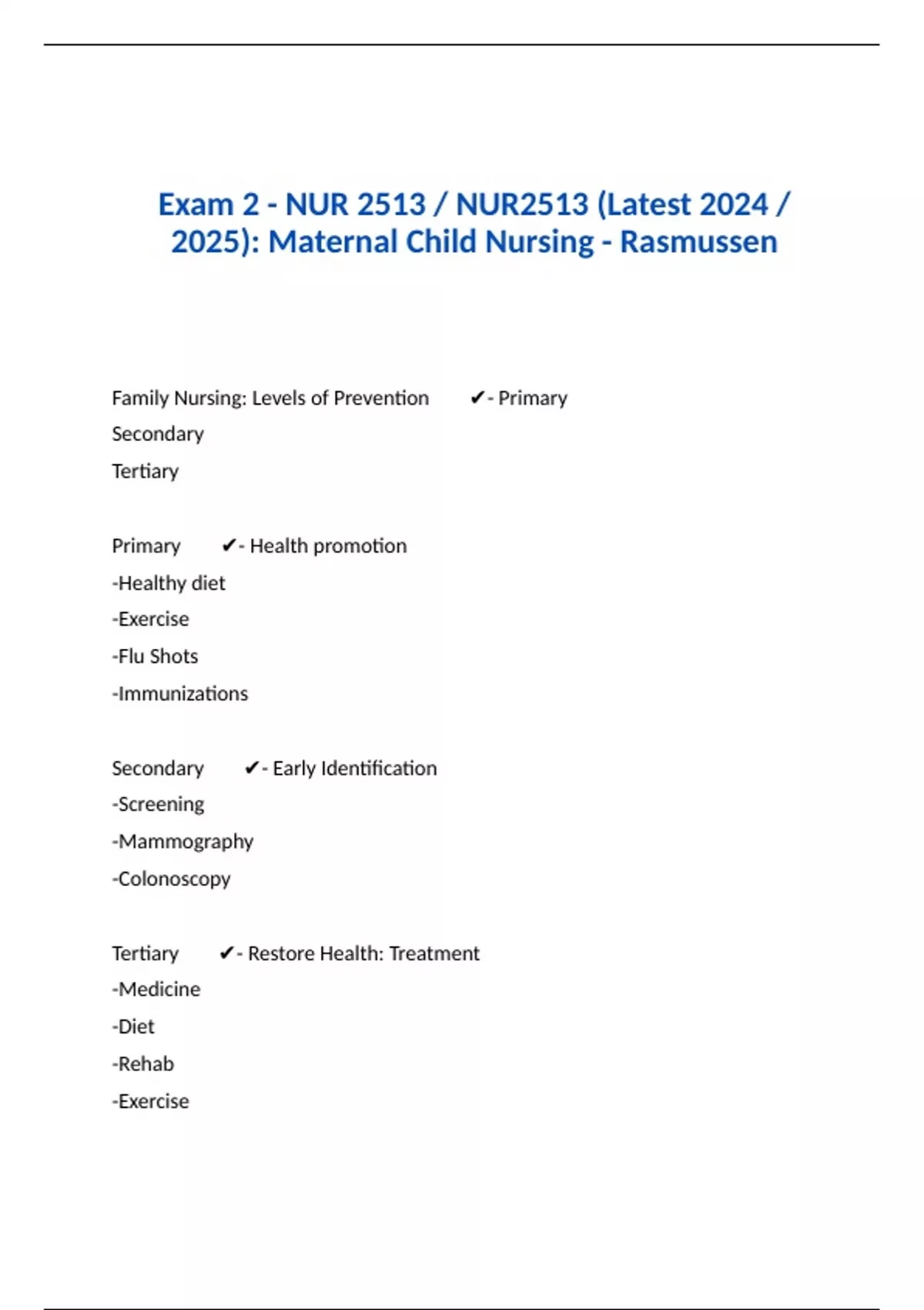 EXAM 2 - NUR 2513 / NUR2513 (LATEST 2024 / 2025): MATERNAL CHILD NURSING - RASMUSSEN