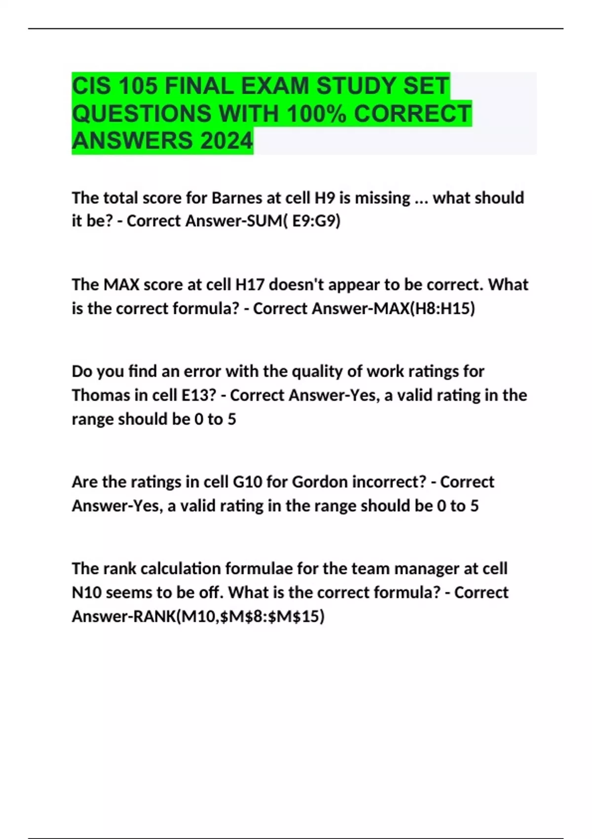 CIS 105 FINAL EXAM STUDY SET QUESTIONS WITH 100% CORRECT ANSWERS 2024