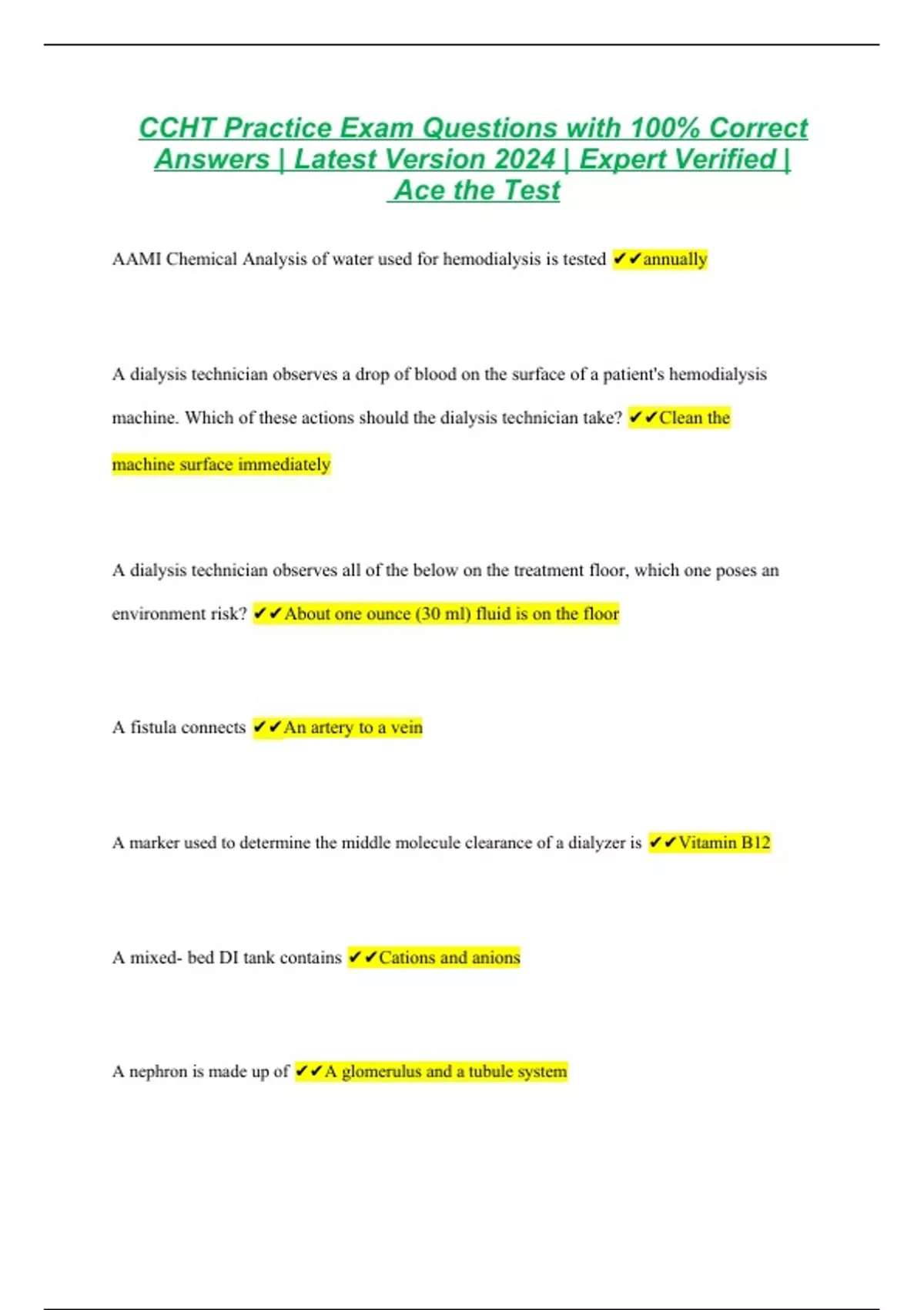 CCHT Bundled Exam Resources with Complete Solution | Expert Verified 2024/2025 | Guaranteed Success