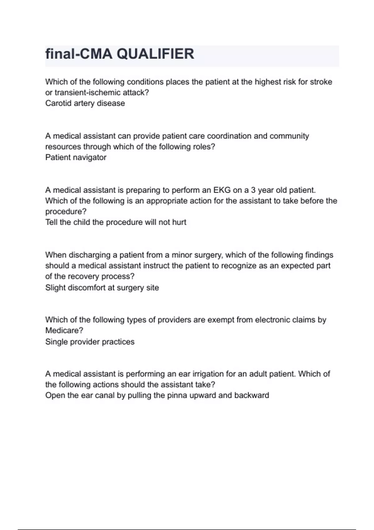 should a medical assistant instruct the patient to recognize as an expected part