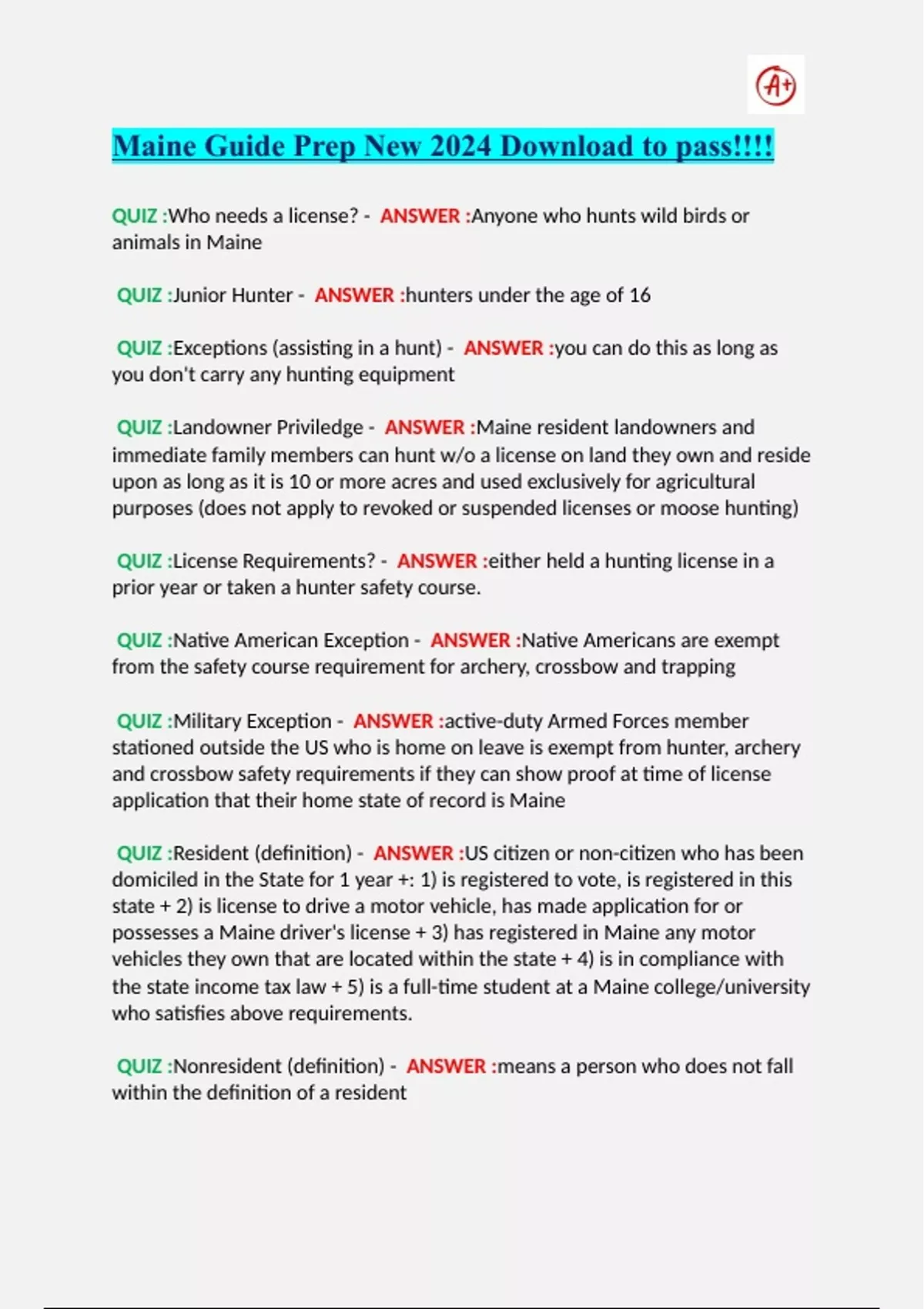 Maine Guide Prep New 2024 Download to pass!!!!