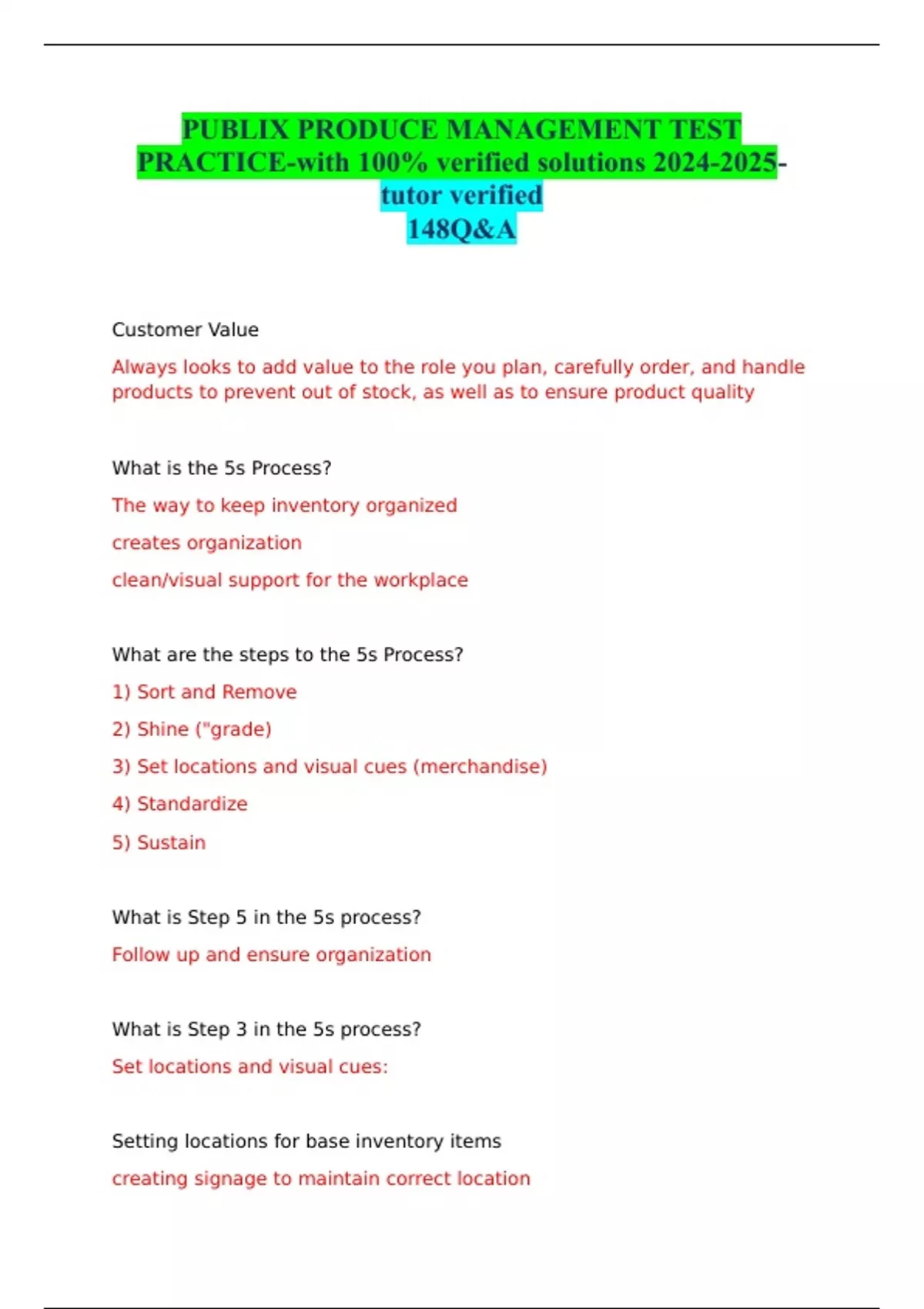 PUBLIX PRODUCE MANAGEMENT TEST PRACTICE-with 100% verified solutions -tutor verified