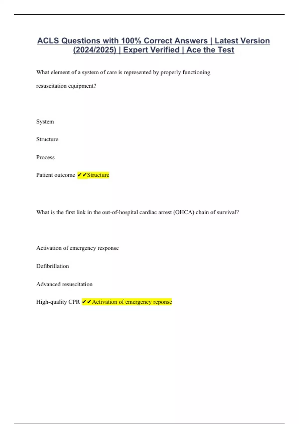 ACLS Questions with 100% Correct Answers | Latest Version (2024/2025) | Expert Verified | Ace the Test