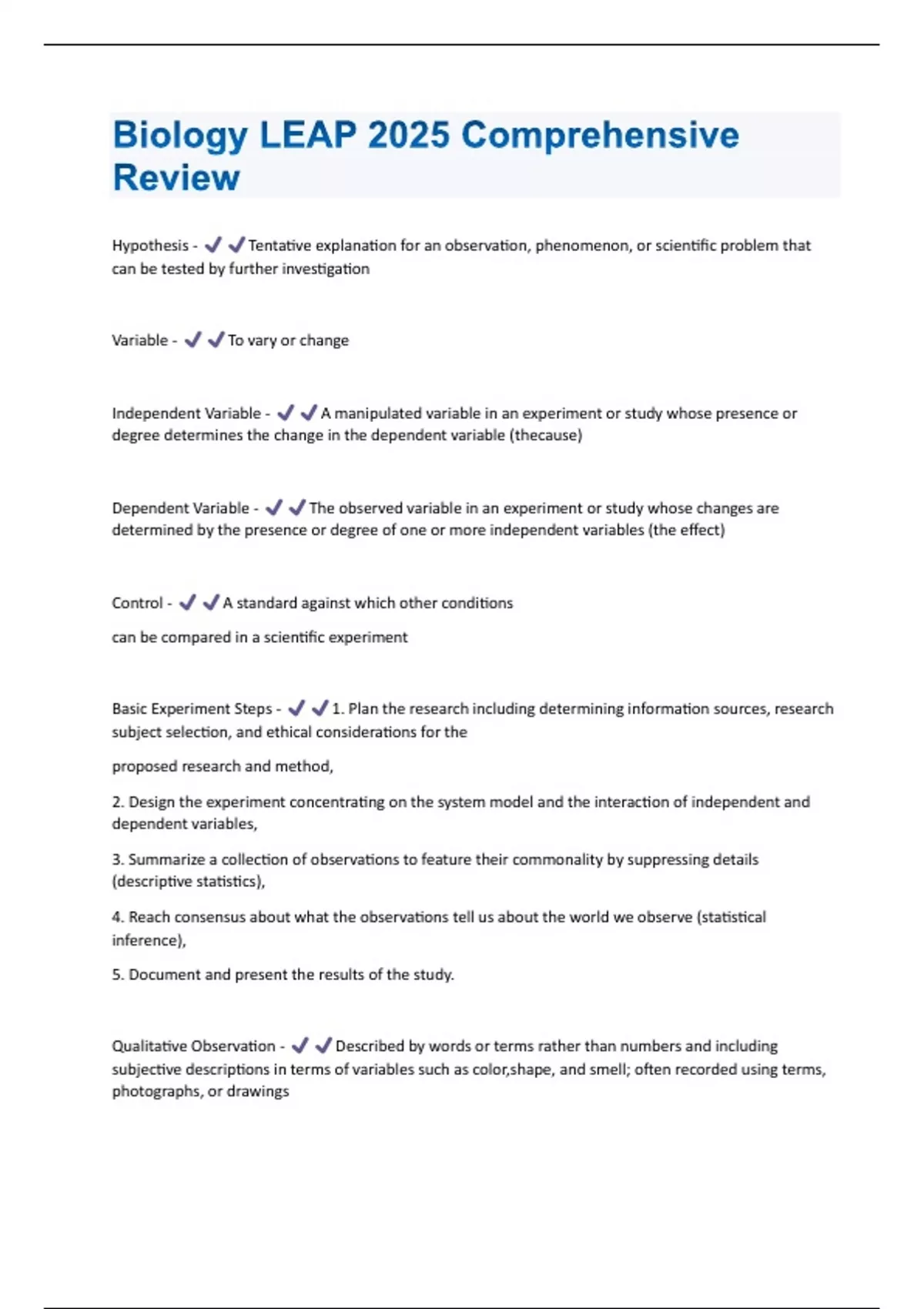 Biology LEAP 2025 Comprehensive Review Exam Graded A+