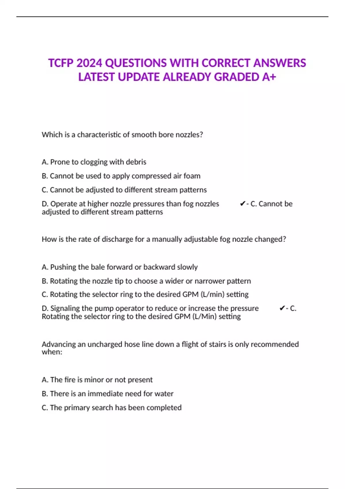 tcfp 2024 questions with correct answers latest up