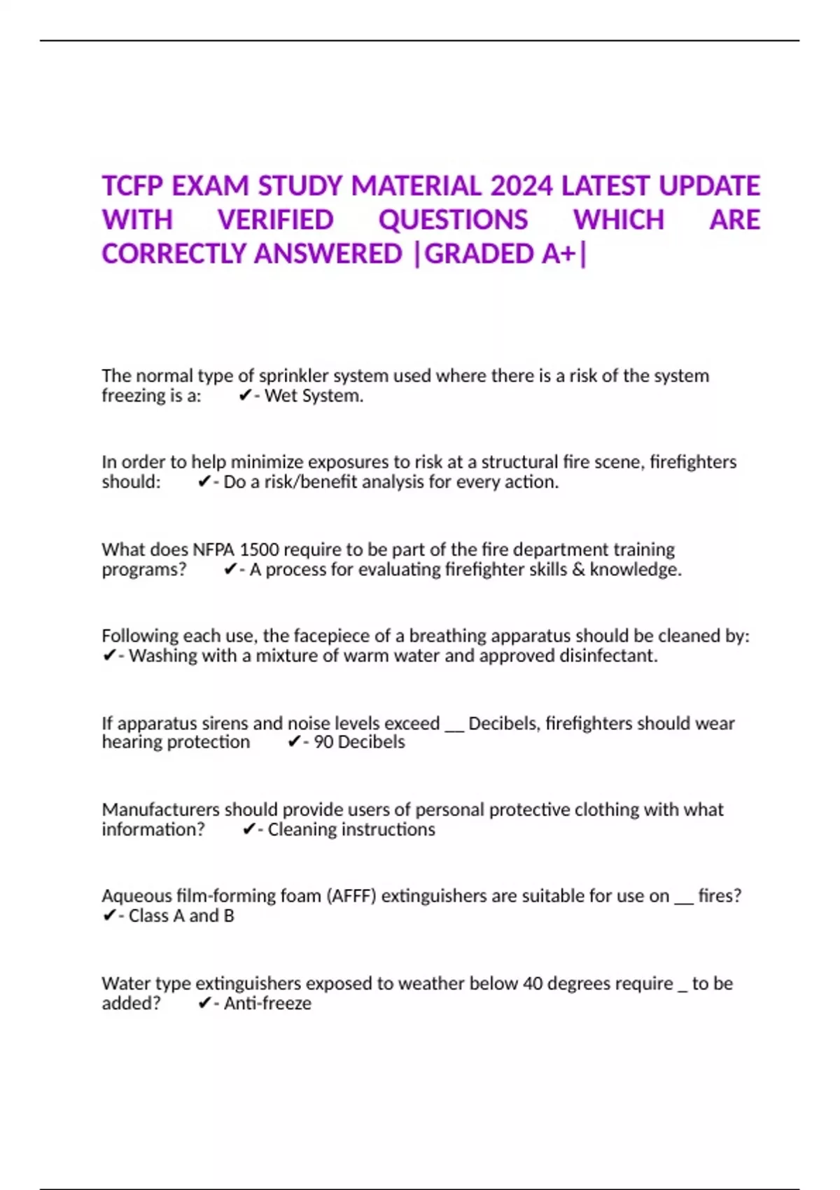 TCFP EXAM STUDY MATERIAL 2024 LATEST UPDATE WITH VERIFIED QUESTIONS WHICH ARE CORRECTLY ANSWERED |GRADED A+|