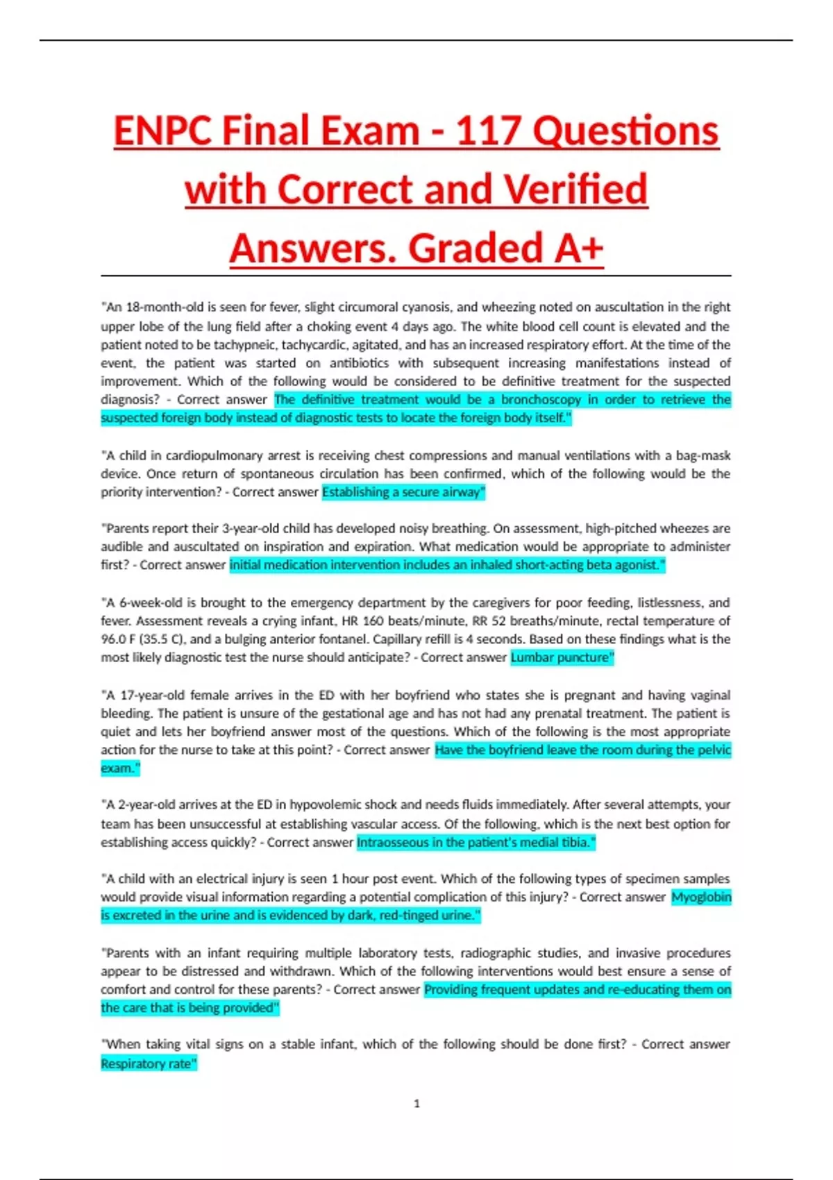 Which of the following interventions would most likely be considered? - Correct answer Endotracheal