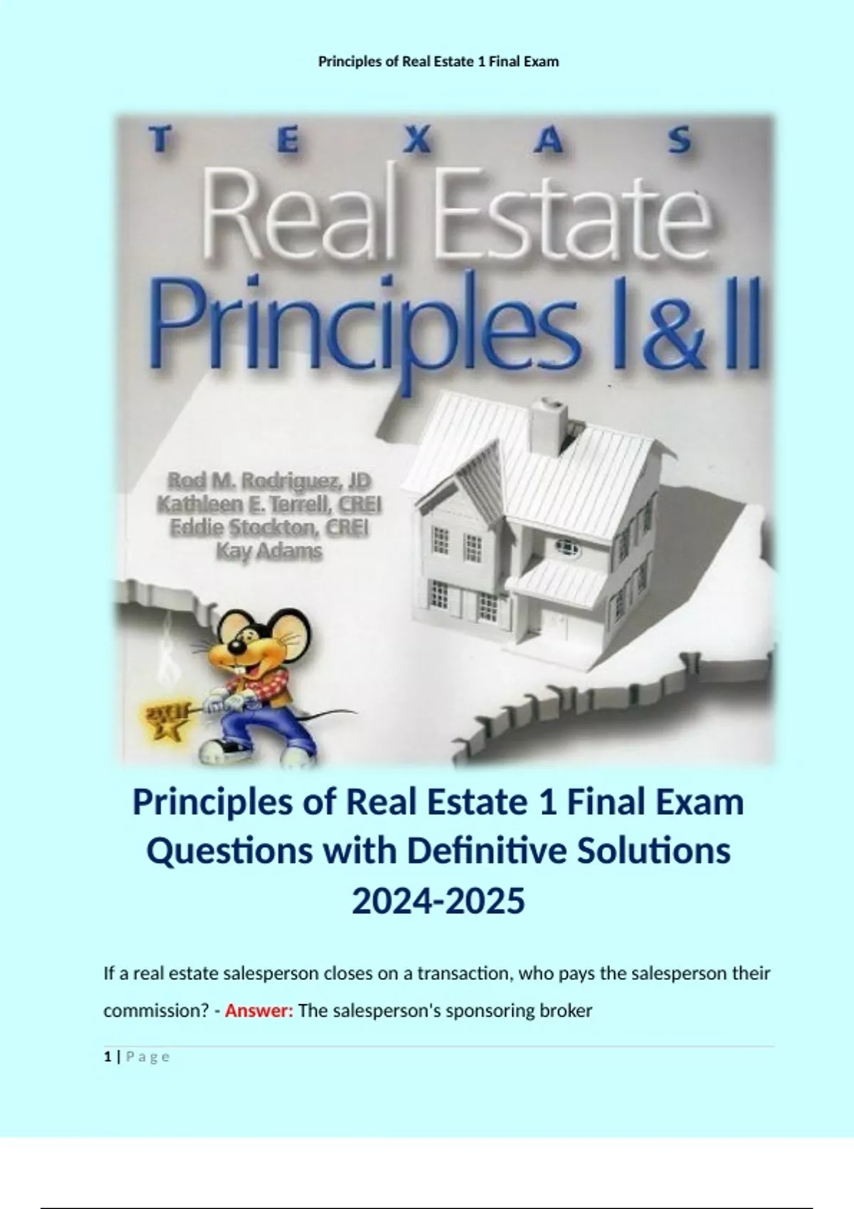 Principles of Real Estate 1 Final Exam Questions with Definitive Solutions .