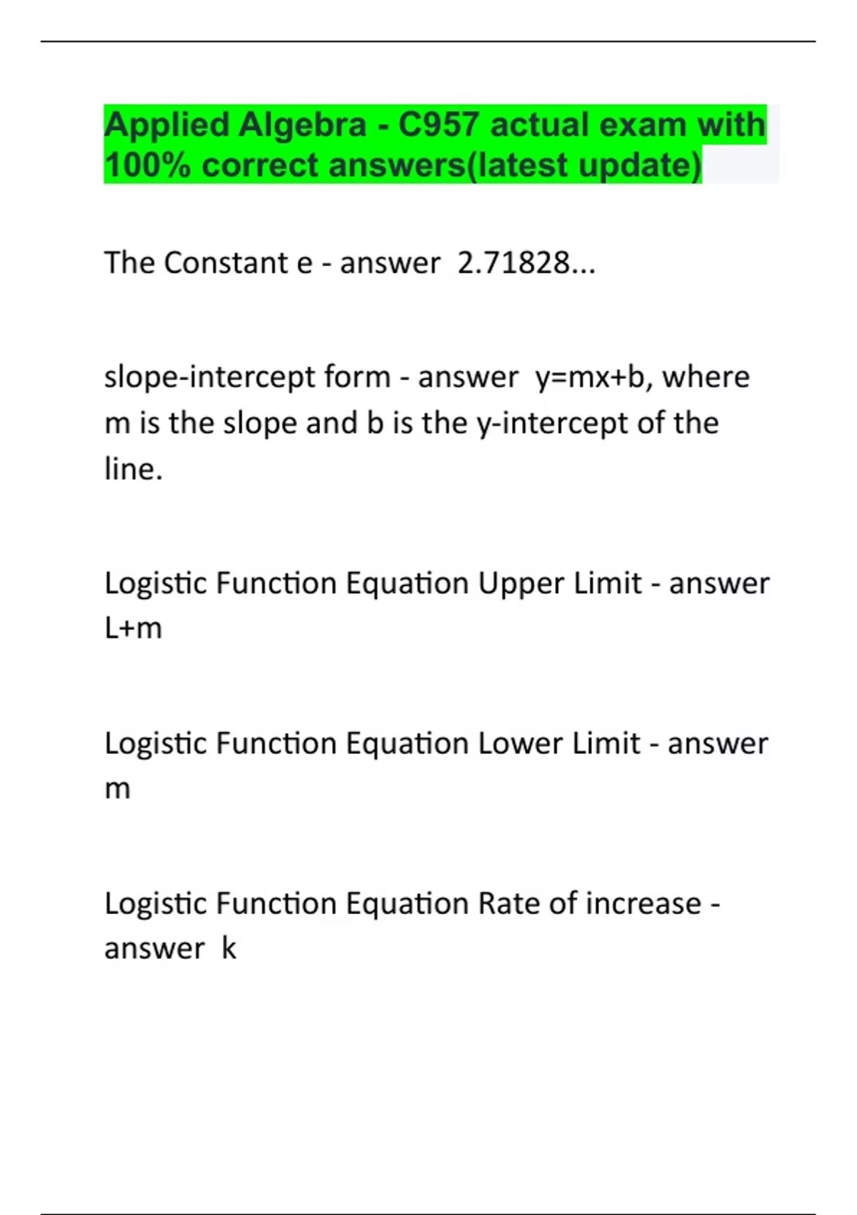 Applied Algebra - C957 actual exam with 100% correct answers(latest update).