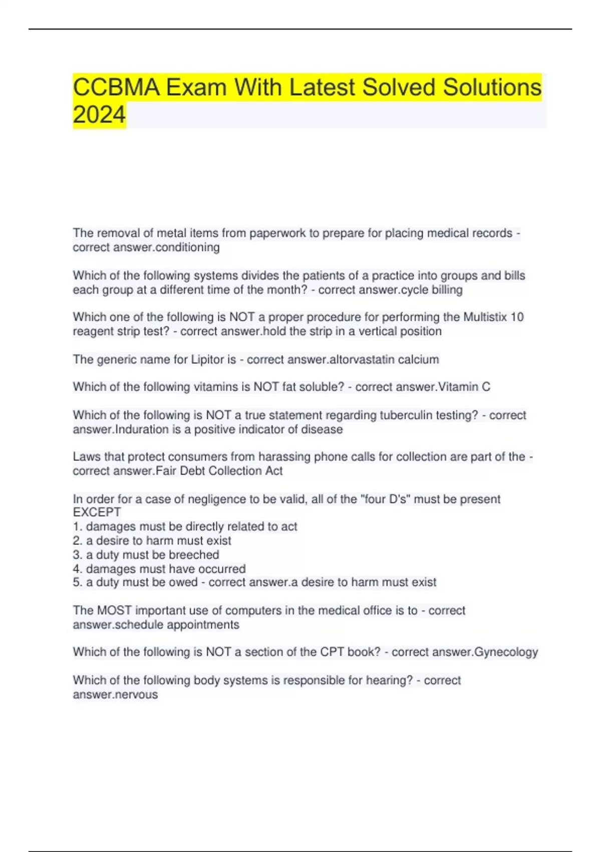 CCBMA Exam With Latest Solved Solutions 2024