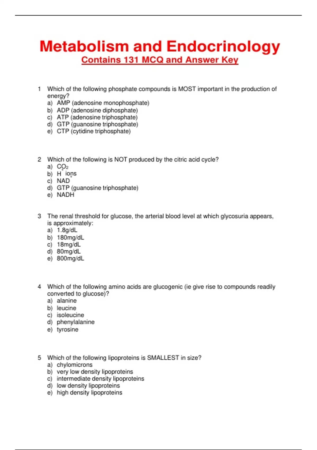 Metabolism and Endocrinology| Contains 131 Highly Tested MCQ and Answer Key
