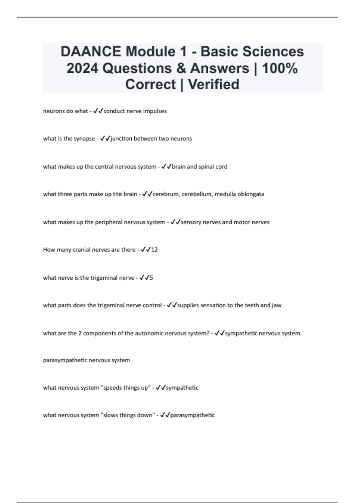 DAANCE Module 1 - Basic Sciences 2024 Questions & Answers | 100% Correct | Verified