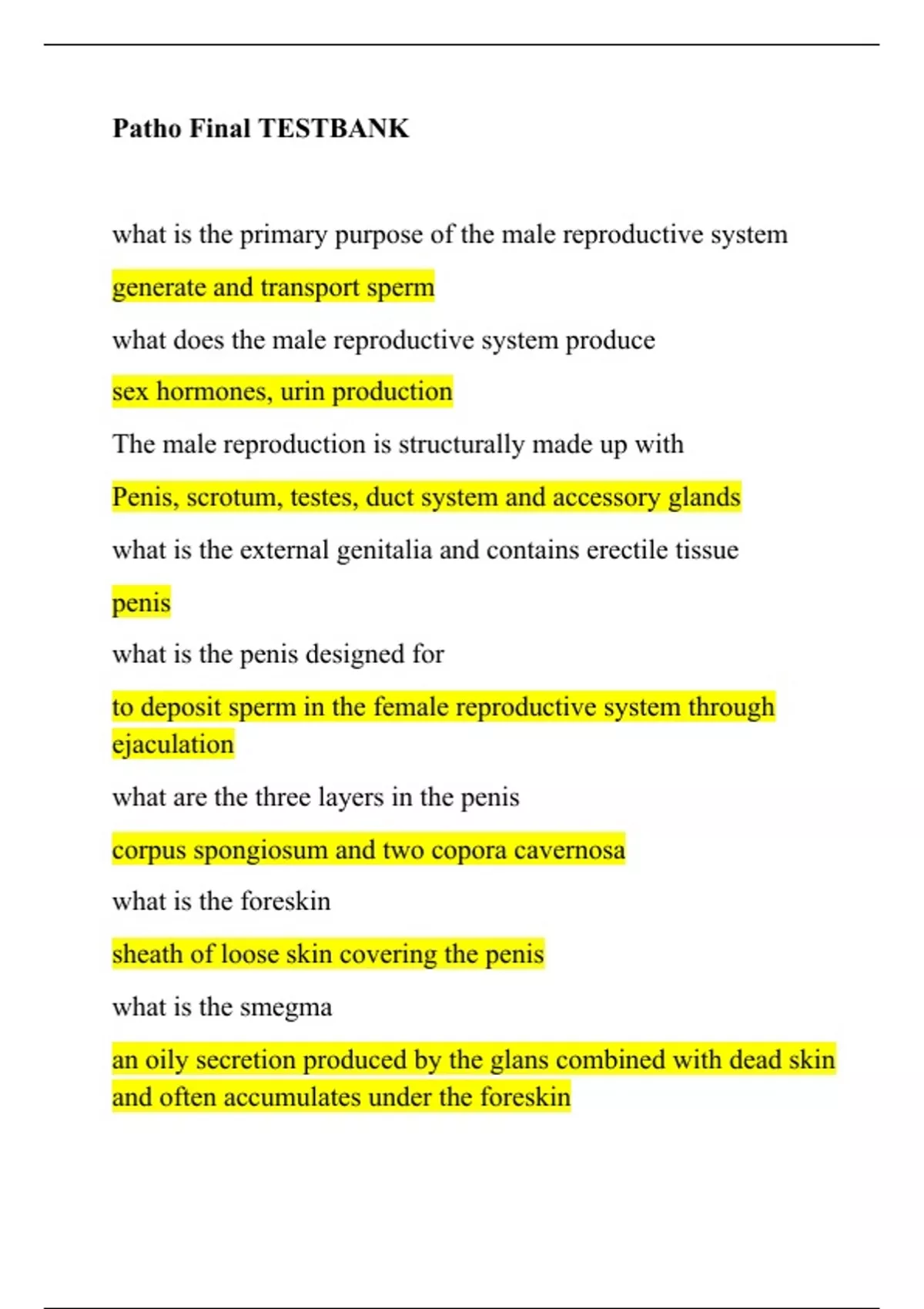 PATHOPHYSIOLOGY Herzing University -Patho Final TESTBANK