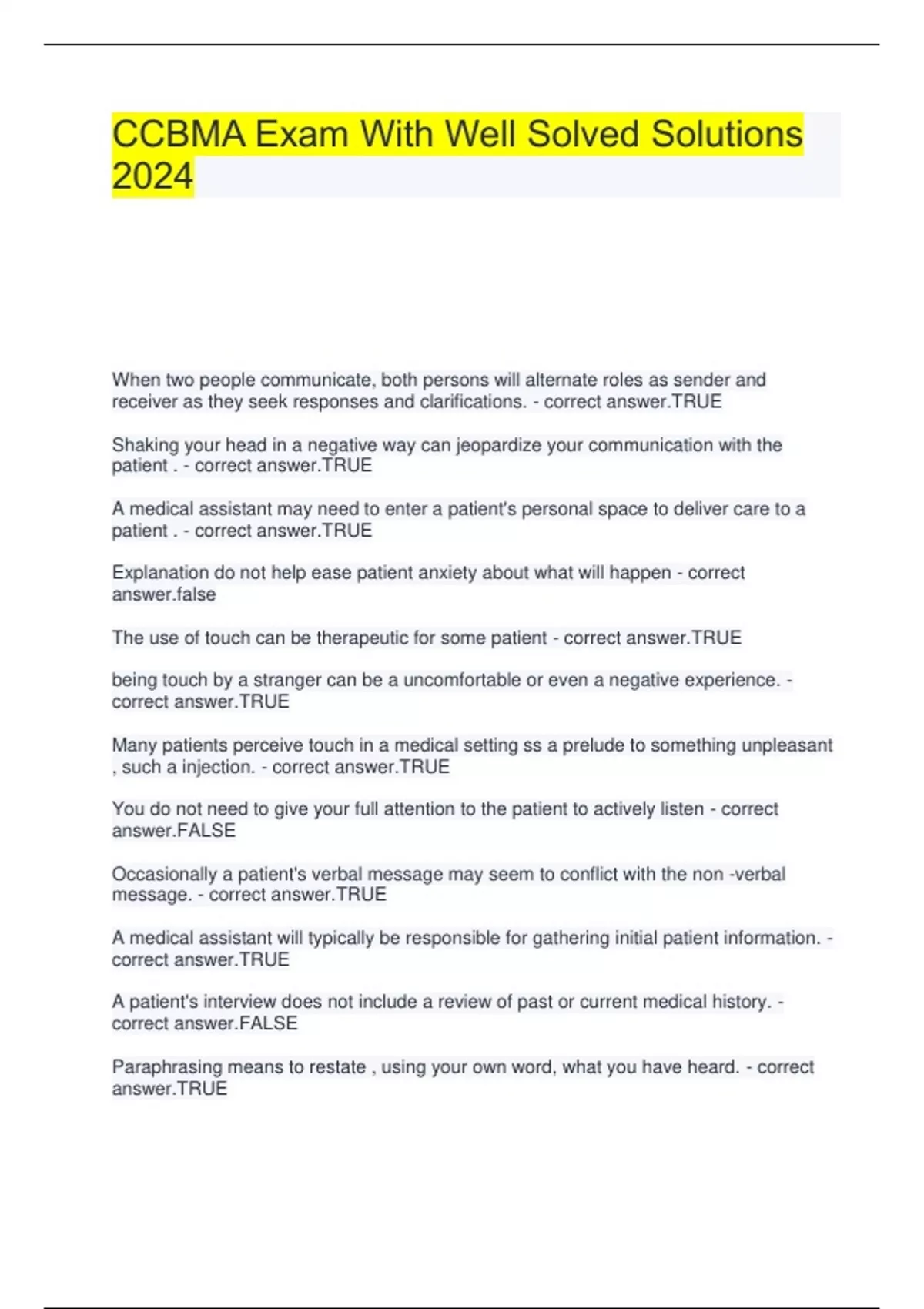 CCBMA Exam With Well Solved Solutions 2024
