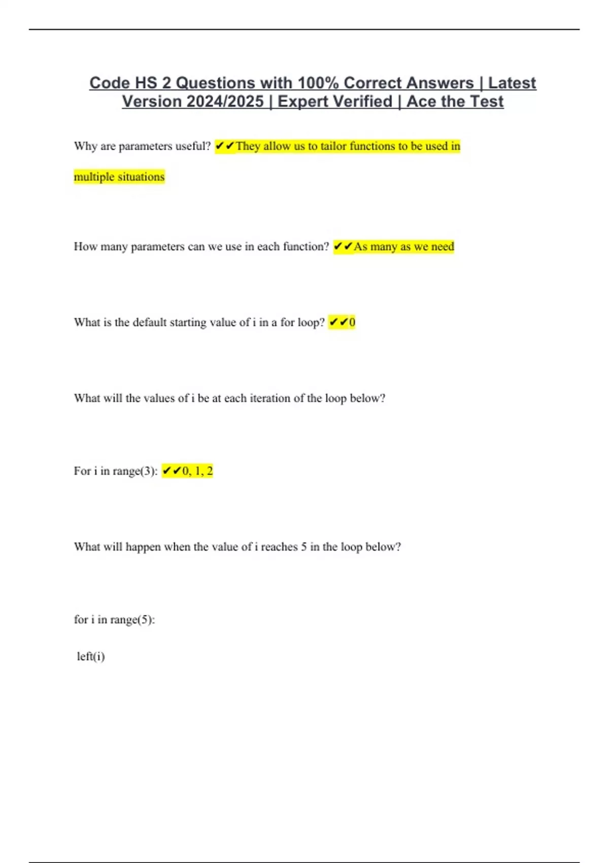 Code HS 2 Questions with 100% Correct Answers | Latest Version 2024/2025 | Expert Verified | Ace the Test