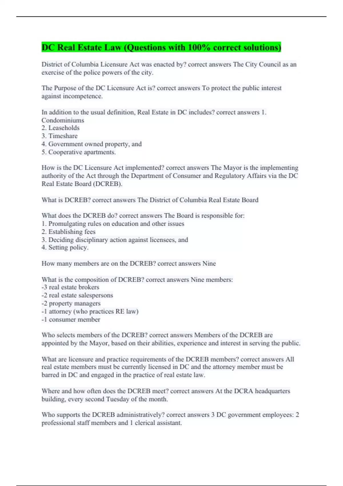 DC Real Estate Law (Questions with 100% correct solutions)