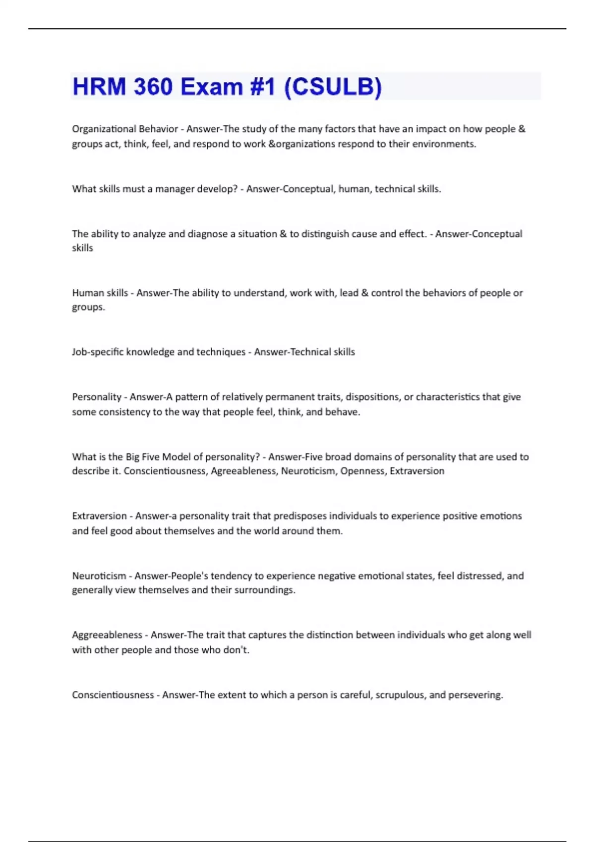 HRM 360 Exam #1 (CSULB) Questions & Answers Correctly Answered.
