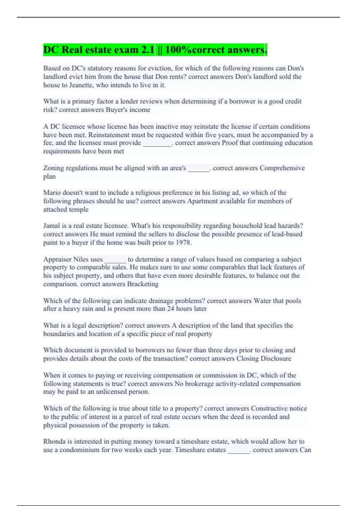 DC Real estate exam 2.1 || 100%correct answers.