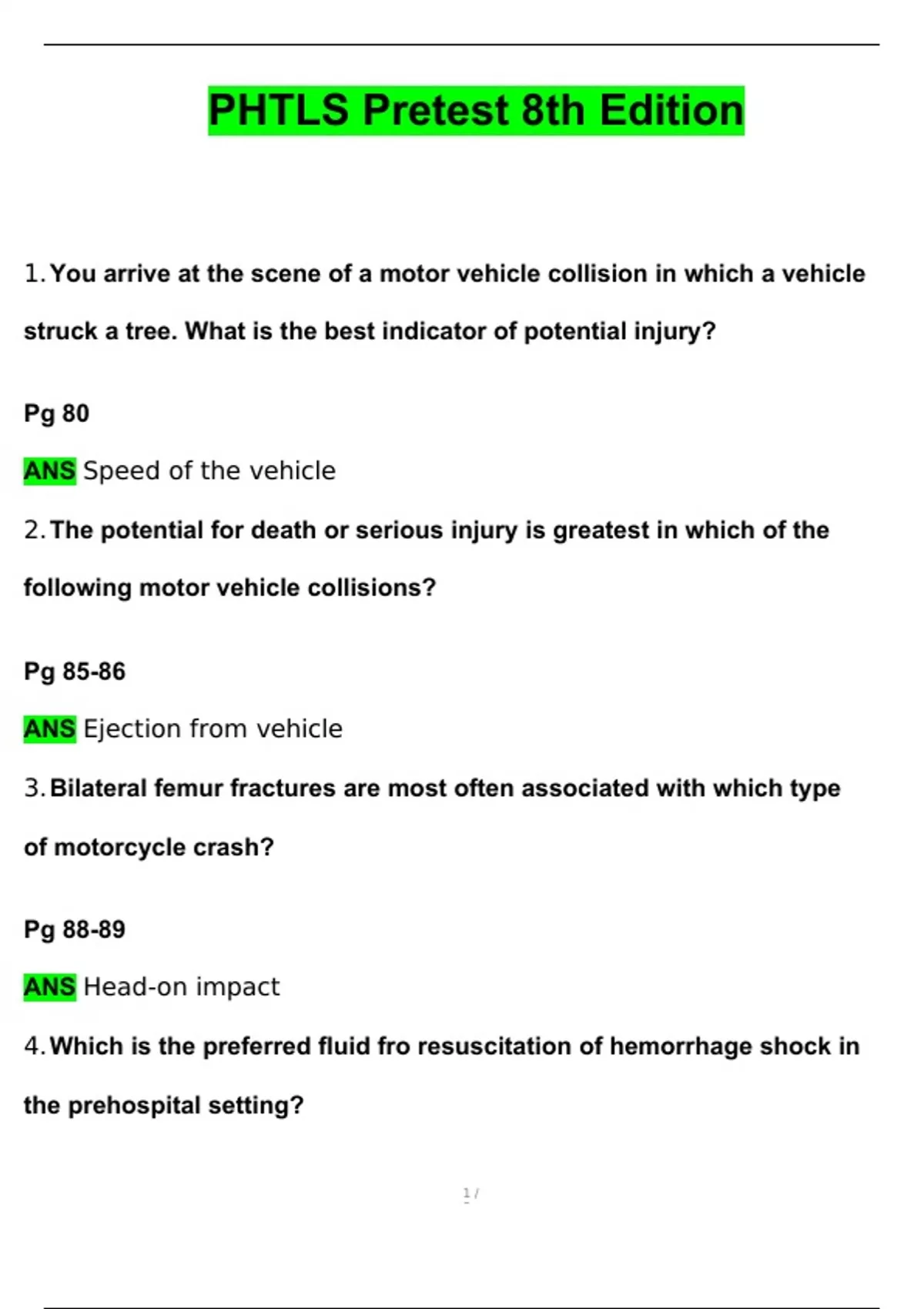 PHTLS Pretest 8th Edition questions & Answers 2024 ( A+ GRADED 100% VERIFIED)