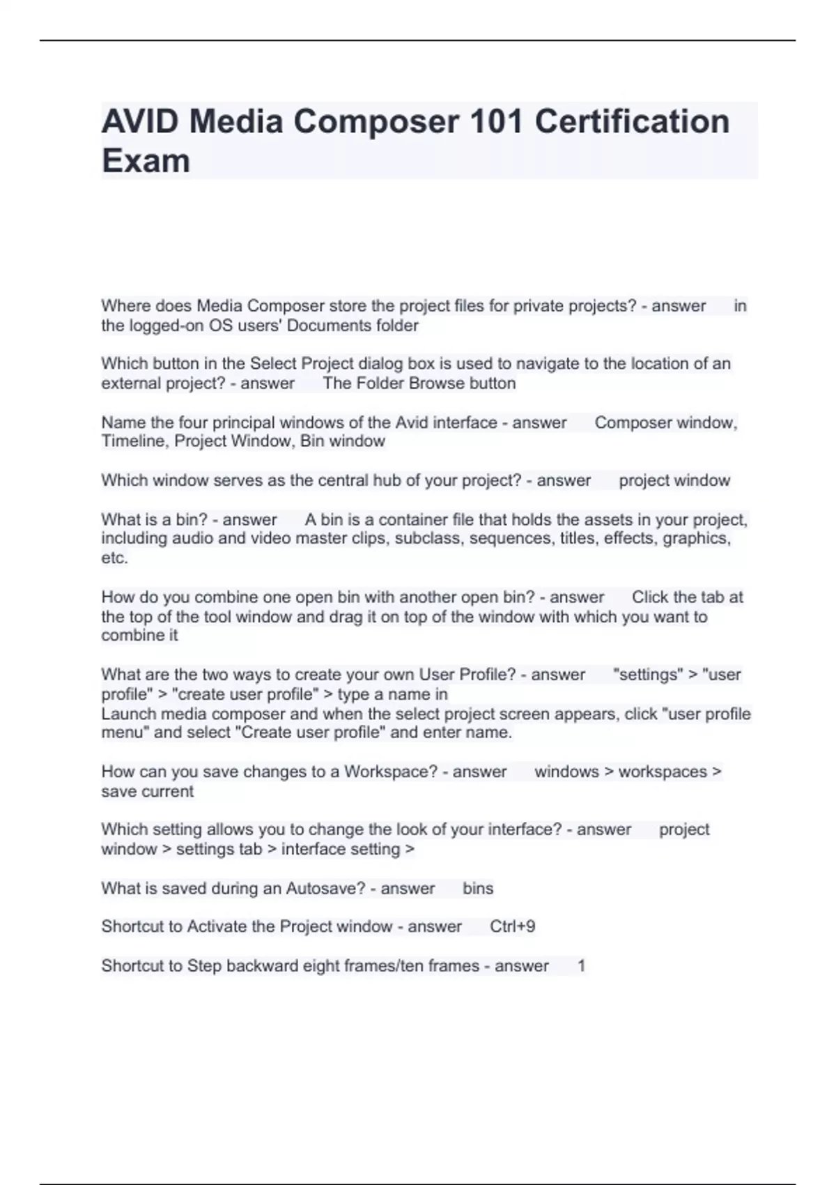 AVID Media Composer 101 Certification Exam, Questions and Answers 100% correct