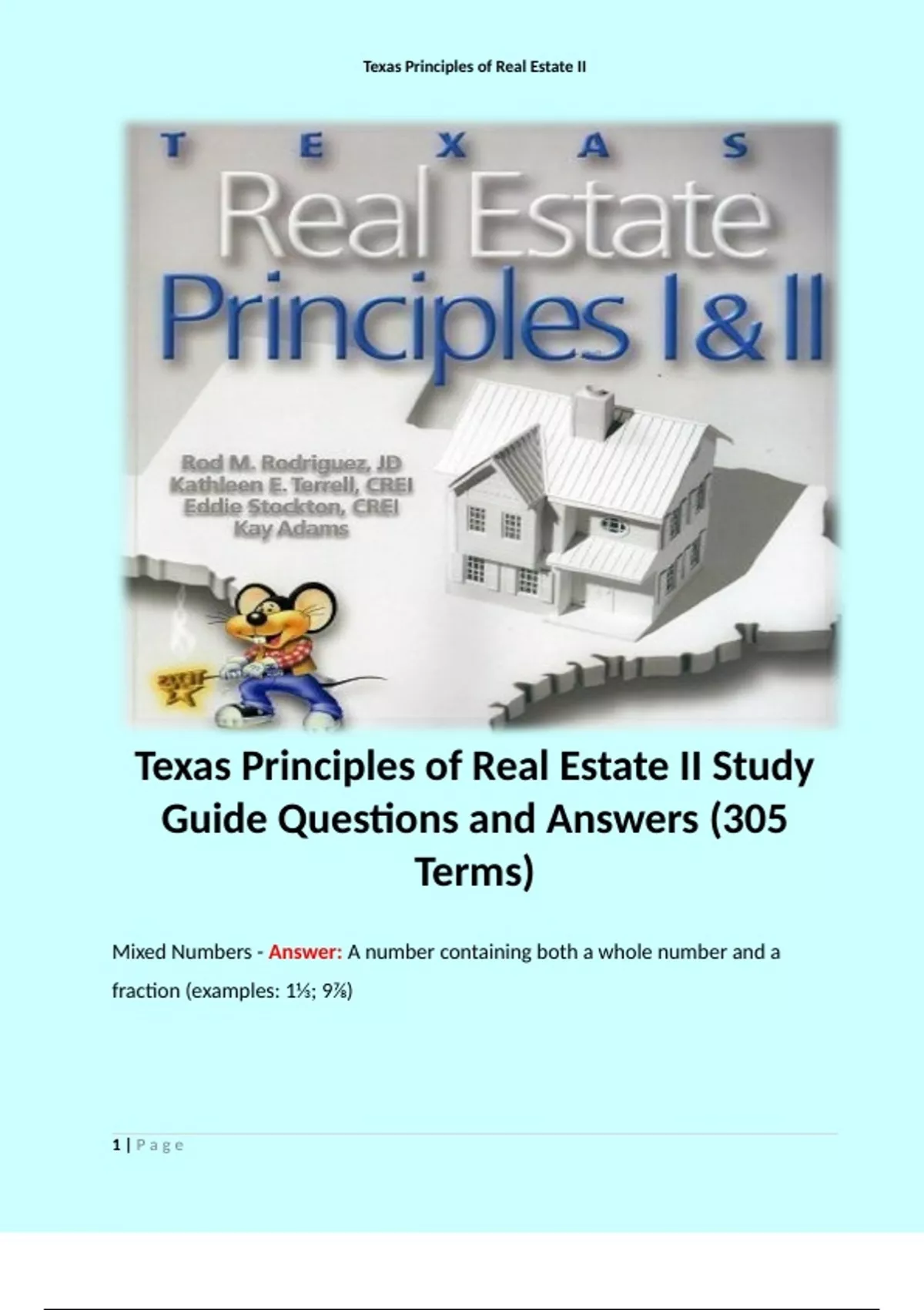 Texas Principles of Real Estate II Study Guide Questions and Answers (305 Terms) like: Mixed Numbers - Answer: A number containing both a whole number and a fraction (examples: 1⅓; 9⅞)