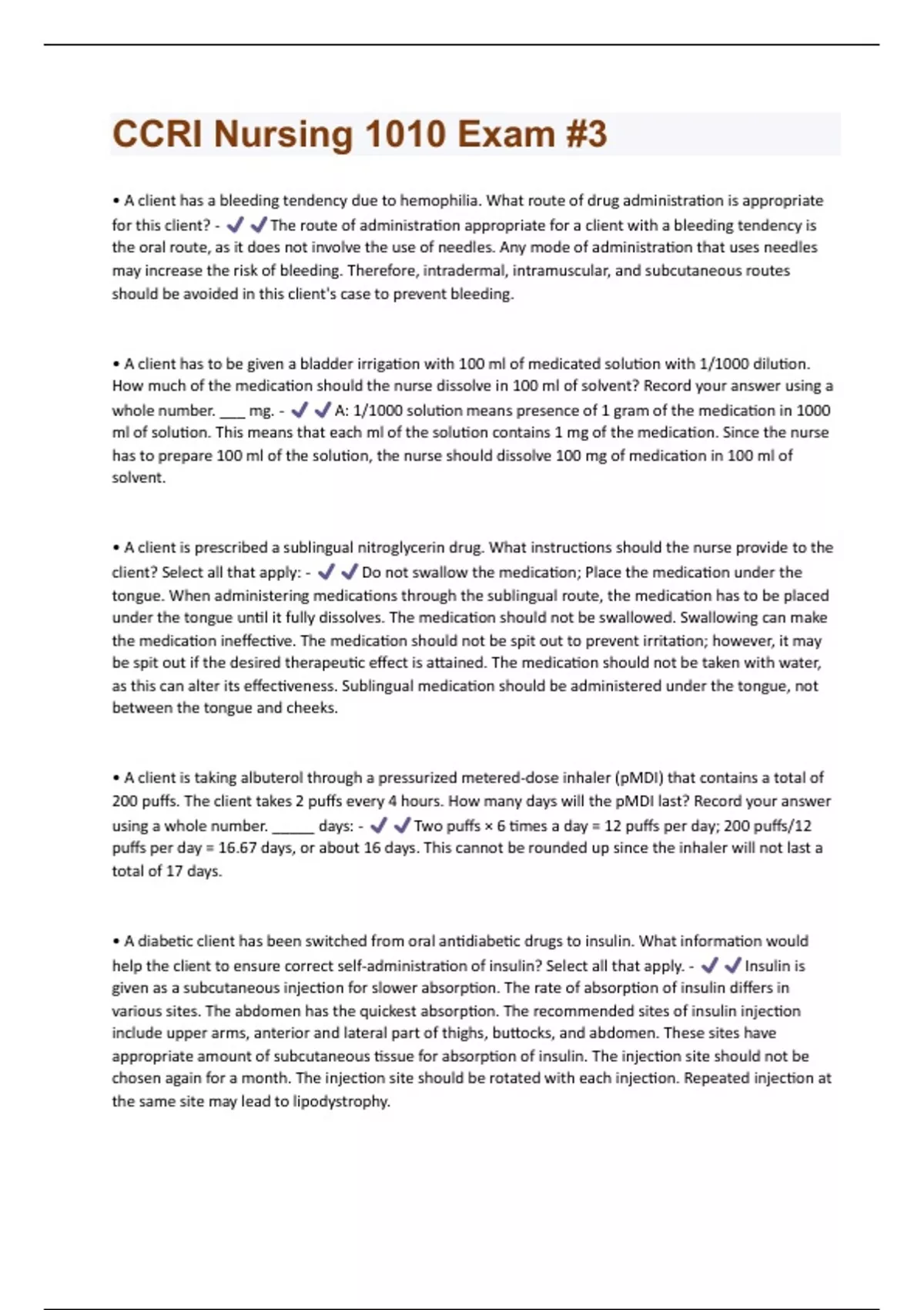 CCRI Nursing 1010 Exam #3 Questions And Answers Graded A+