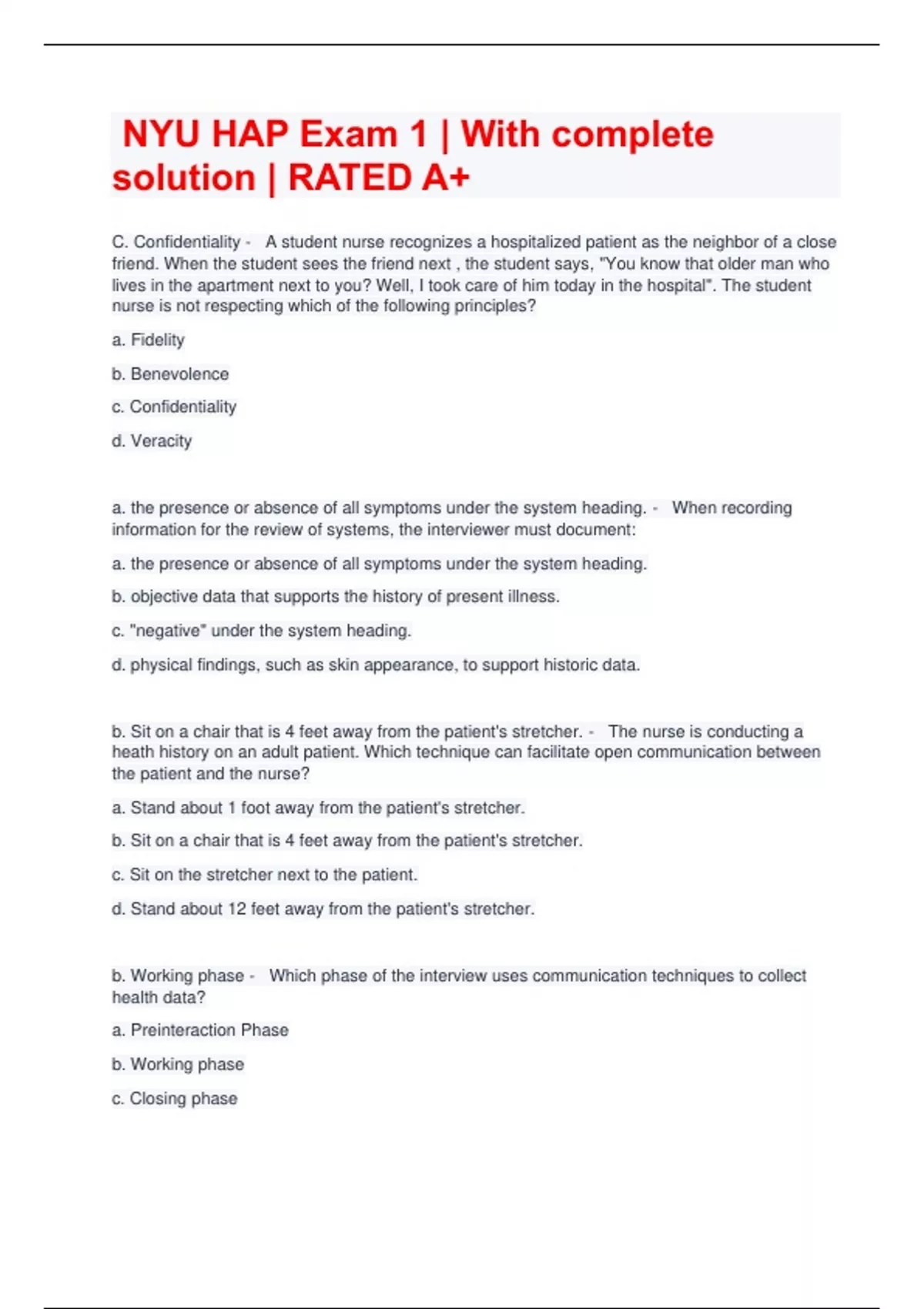 nyu hap exam 1 with complete solution rated a