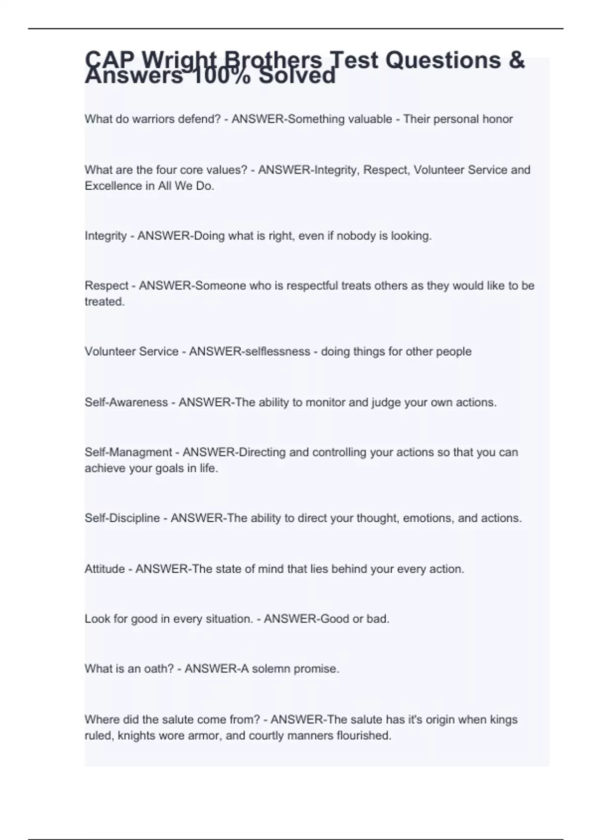 CAP Wright Brothers Test Questions & Answers 100% Solved