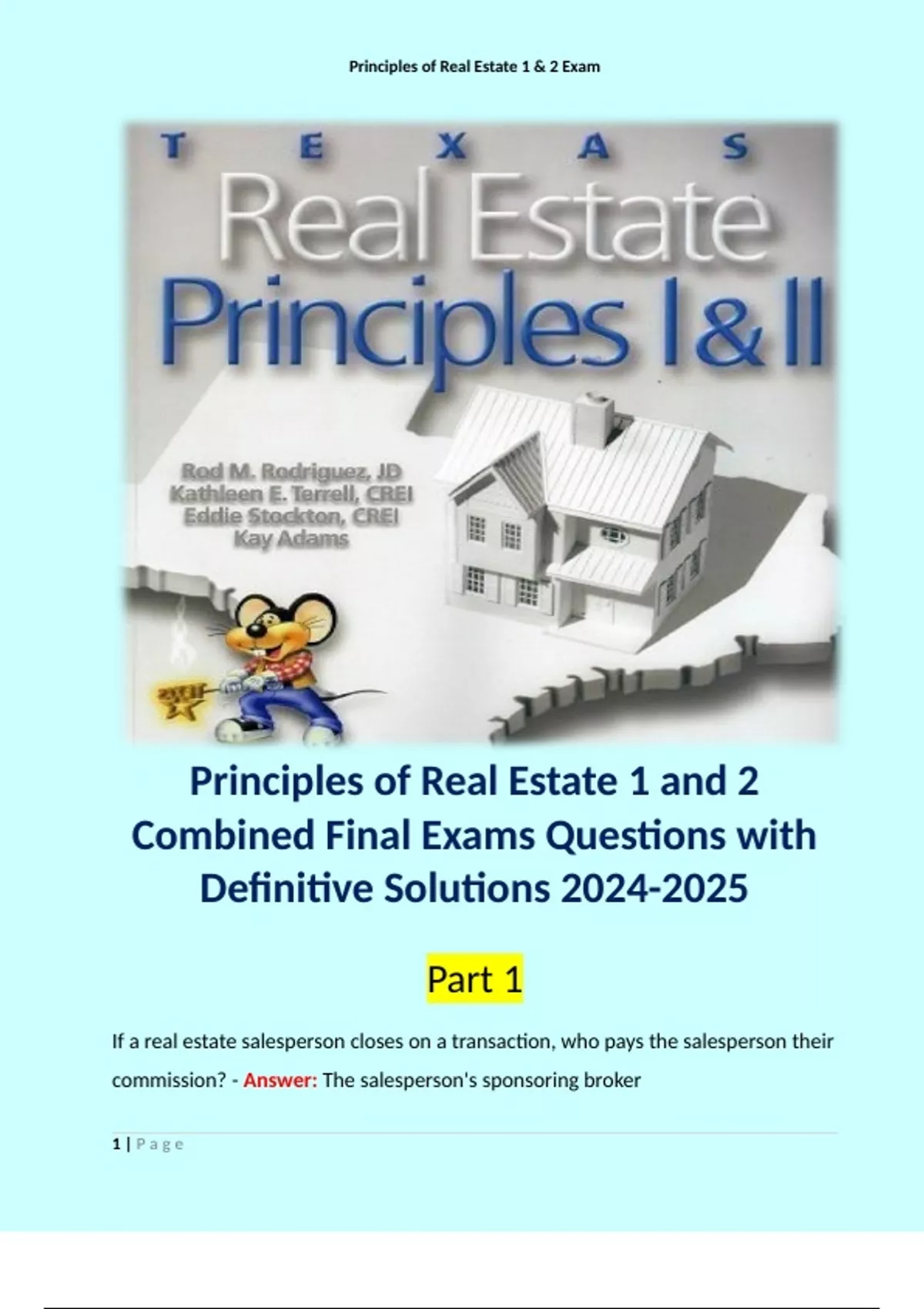 Principles of Real Estate 1 and 2 Combined Final Exams Questions with Definitive Solutions .