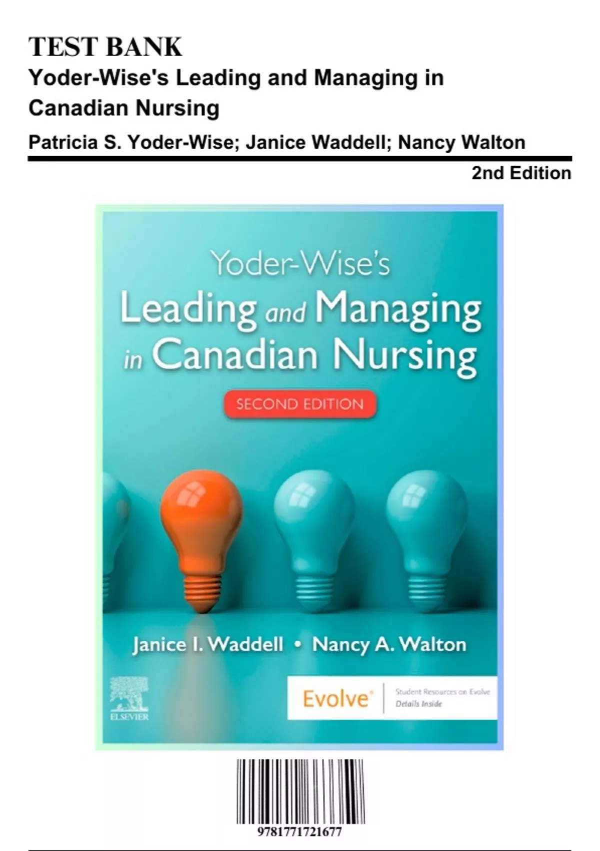 Test Bank for Yoder-Wise's Leading and Managing in Canadian Nursing, 2nd Edition by Waddell, 9781771721677, Covering Chapters 1-32 | Includes Rationales